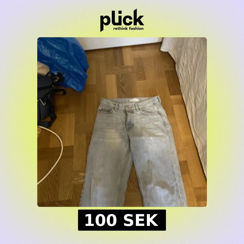 Säljer ett par ljusblå jeansbyxor med en klassisk design. Byxorna har en rak passform och är perfekta för en avslappnad stil. De har en knapp och dragkedja framtill.