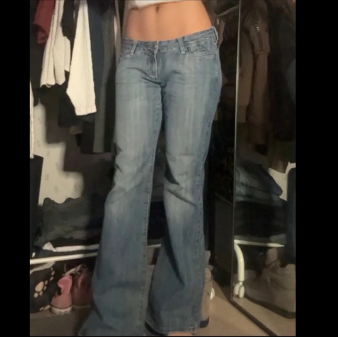 Superfina lågmidjade jeans i bootcut passform. I överlag fint skick bara lite slitna längst ner där bak då det är lite nertrampade! Storlek 29×30. Hör av er för mått❤️🙏