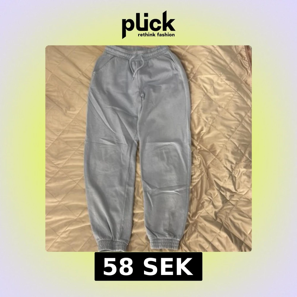 Säljer ett par ljusgrå mjukisbyxor från Lindex med trycket 'TODAY TOMORROW' på benet. Byxorna har elastisk midja med snörning, ribbade muddar vid benslut och är gjorda i mjuk bomull. Perfekta för chill dagar eller träning.