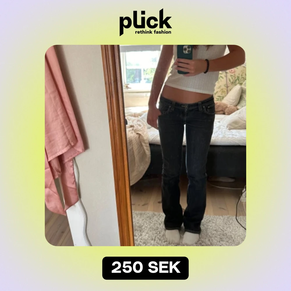 Sjukt snygga väldigt lågmidgade bootcut jeans pågrund av att de är lite för långa och stora på mig🥰 skriv om fler bilder om det behövs ❤️