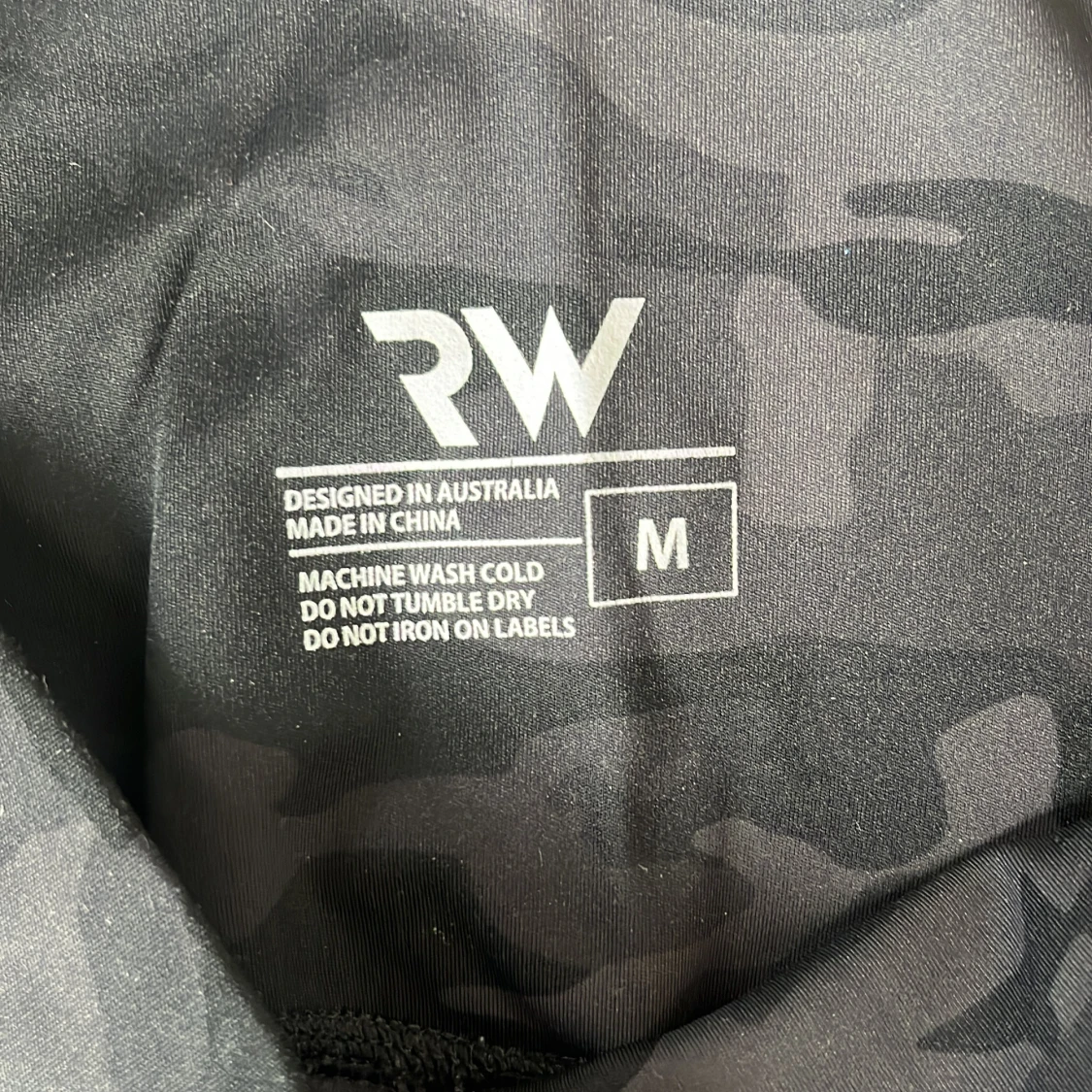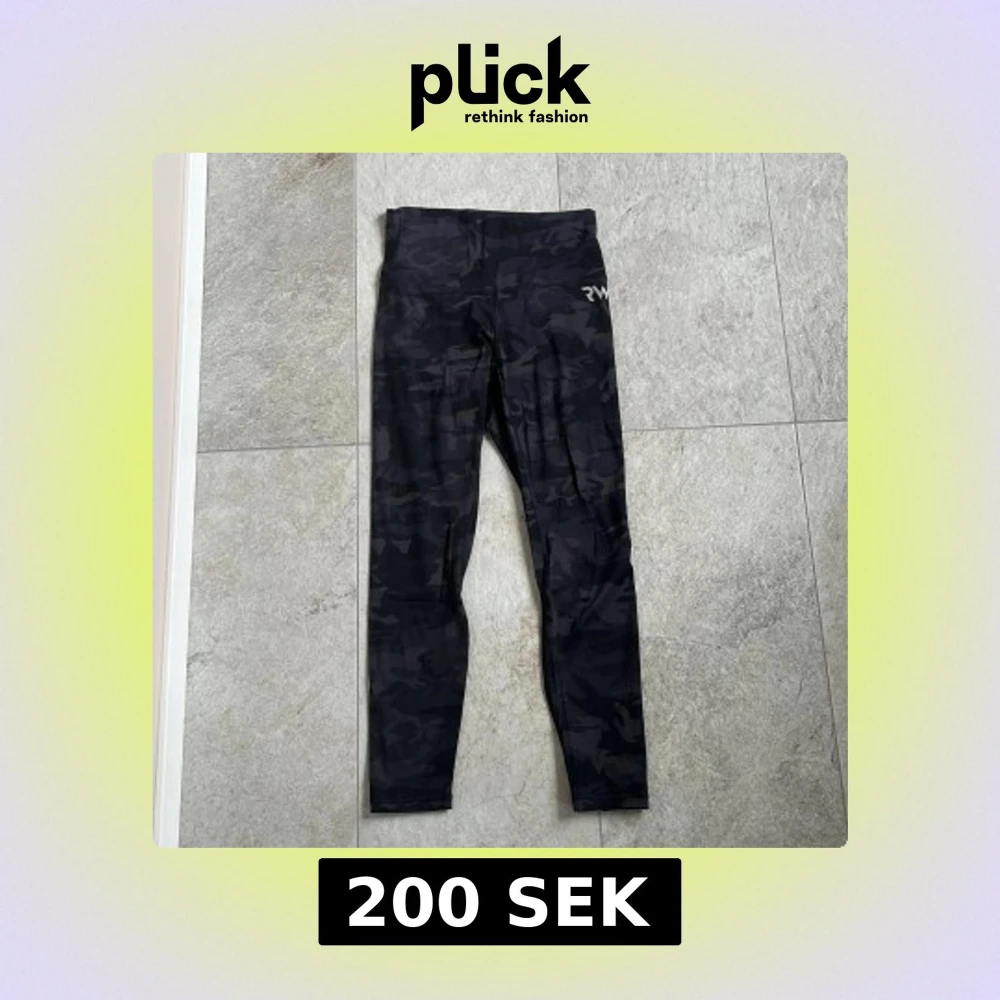 Snygga svarta träningsbyxor från Rapid Wear med mycket diskret camouflagemönster. De är högmidjade och har en tight passform. Tillverkade i ett stretchigt syntetmaterial som sitter skönt hela dagen.