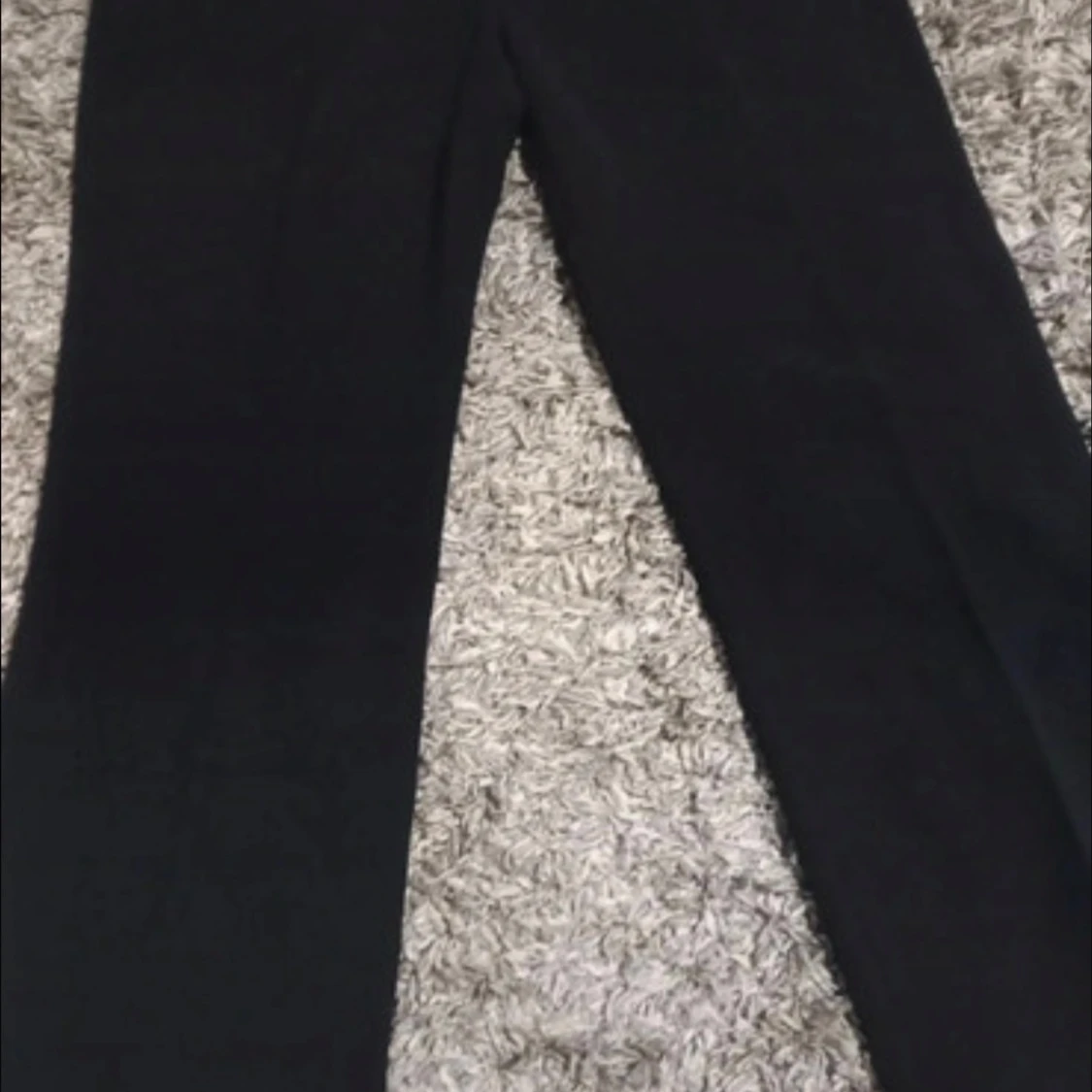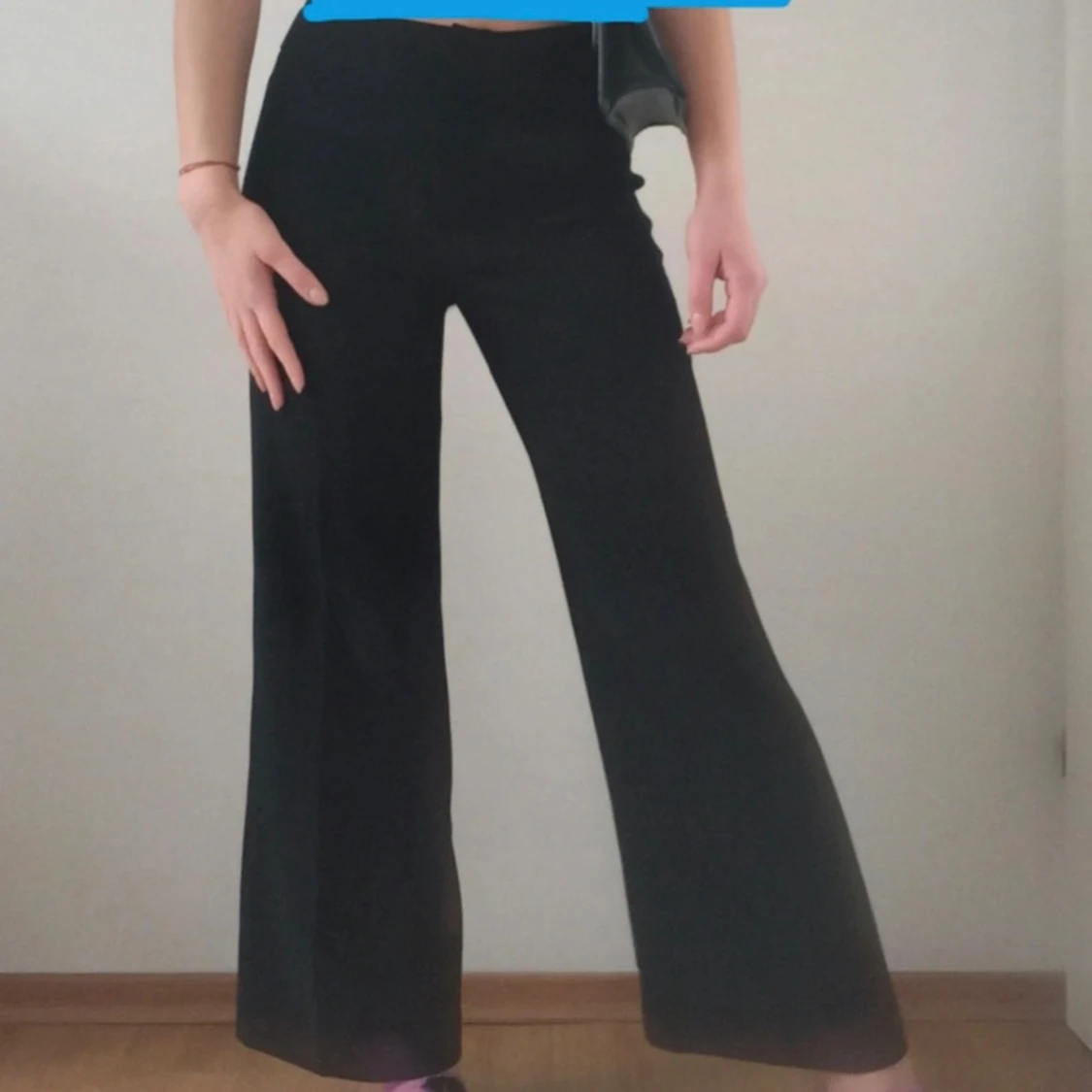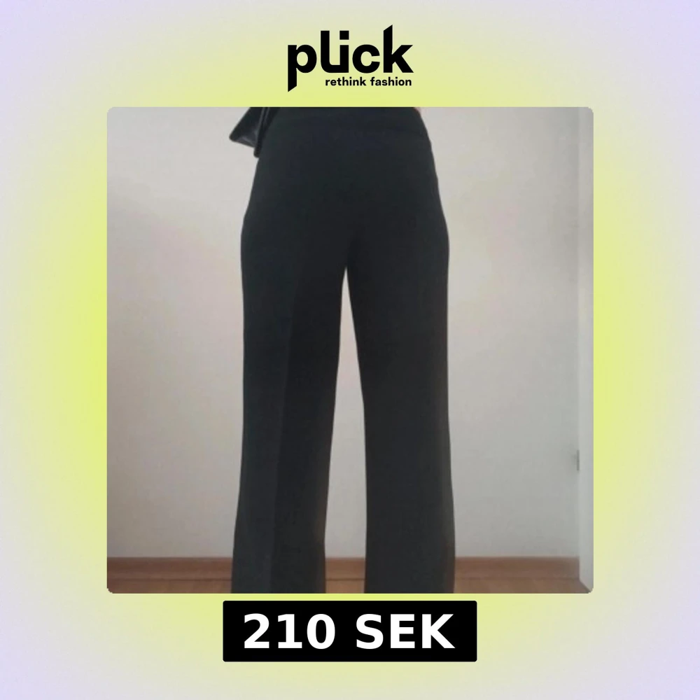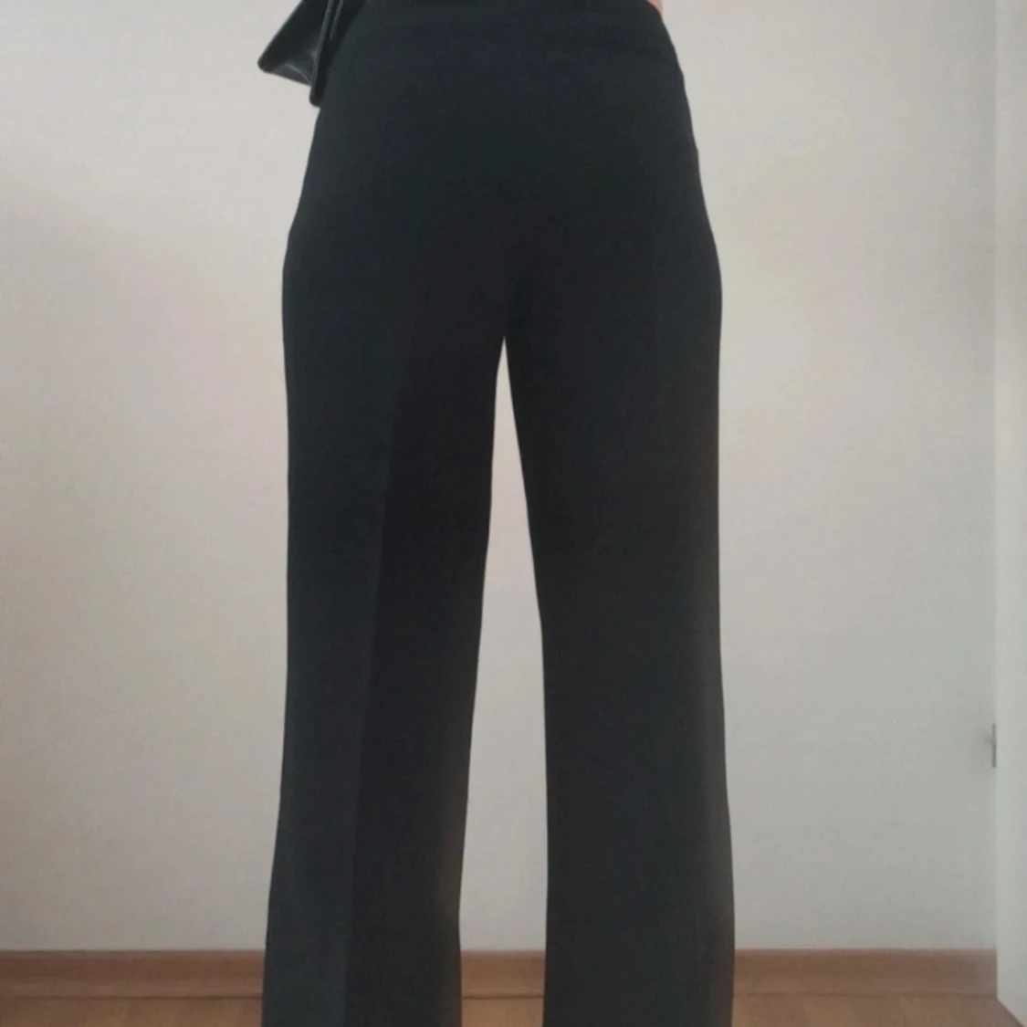 Snygga svarta byxor med hög midja och wide fit. De har raka, vida ben och är perfekta för en clean och trendig look. Materialet känns mjukt och följsamt, vilket gör dem riktigt sköna att bära. Passar dig som gillar stilrena och enkla plagg.Mycket bra skick! Storlek M/38 Högmidjade. Totallängd ca 100 cm. De passar M/L, skicka meddelande för mer exakta mått. Skickas samma dag eller nästa dag. För exakta mått eller andra frågor skicka ett meddelande.