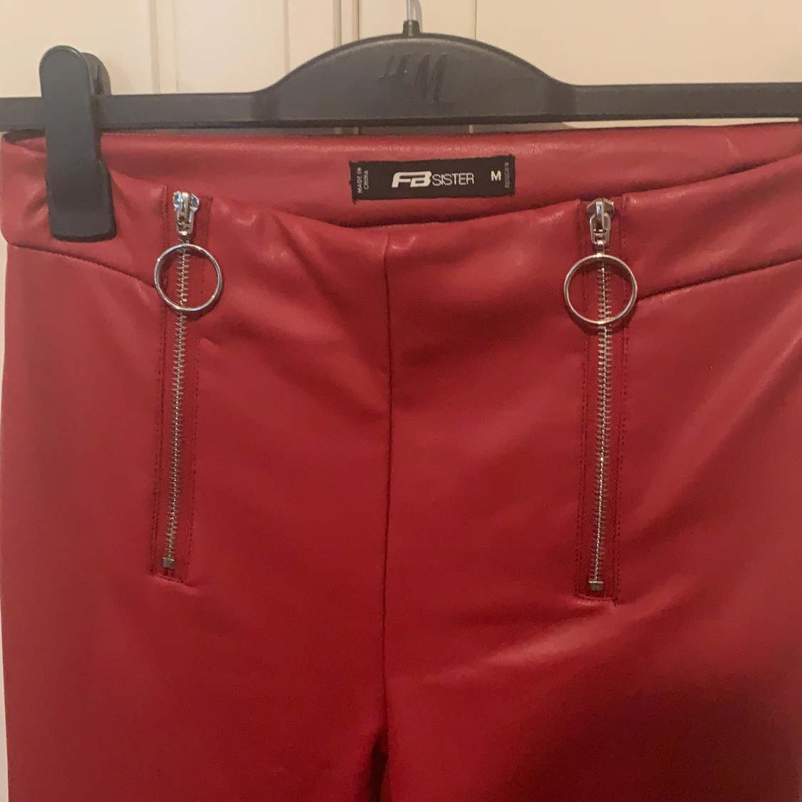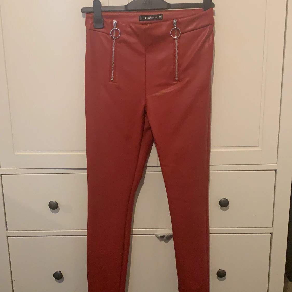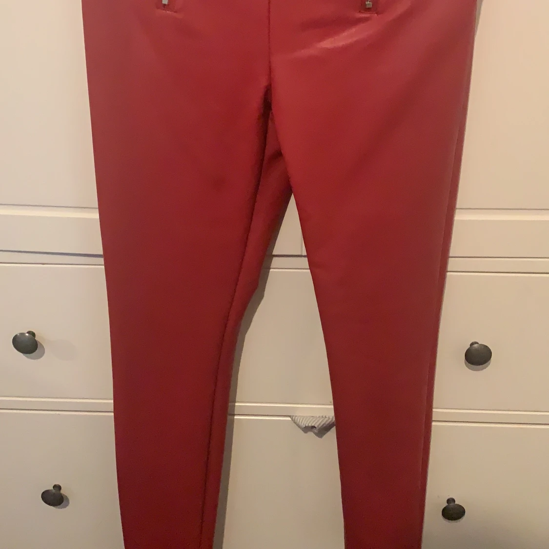 Röda skinnbyxor med väldigt fin detalj aldrig använd i strl M sätter sig jätte fint på kroppen