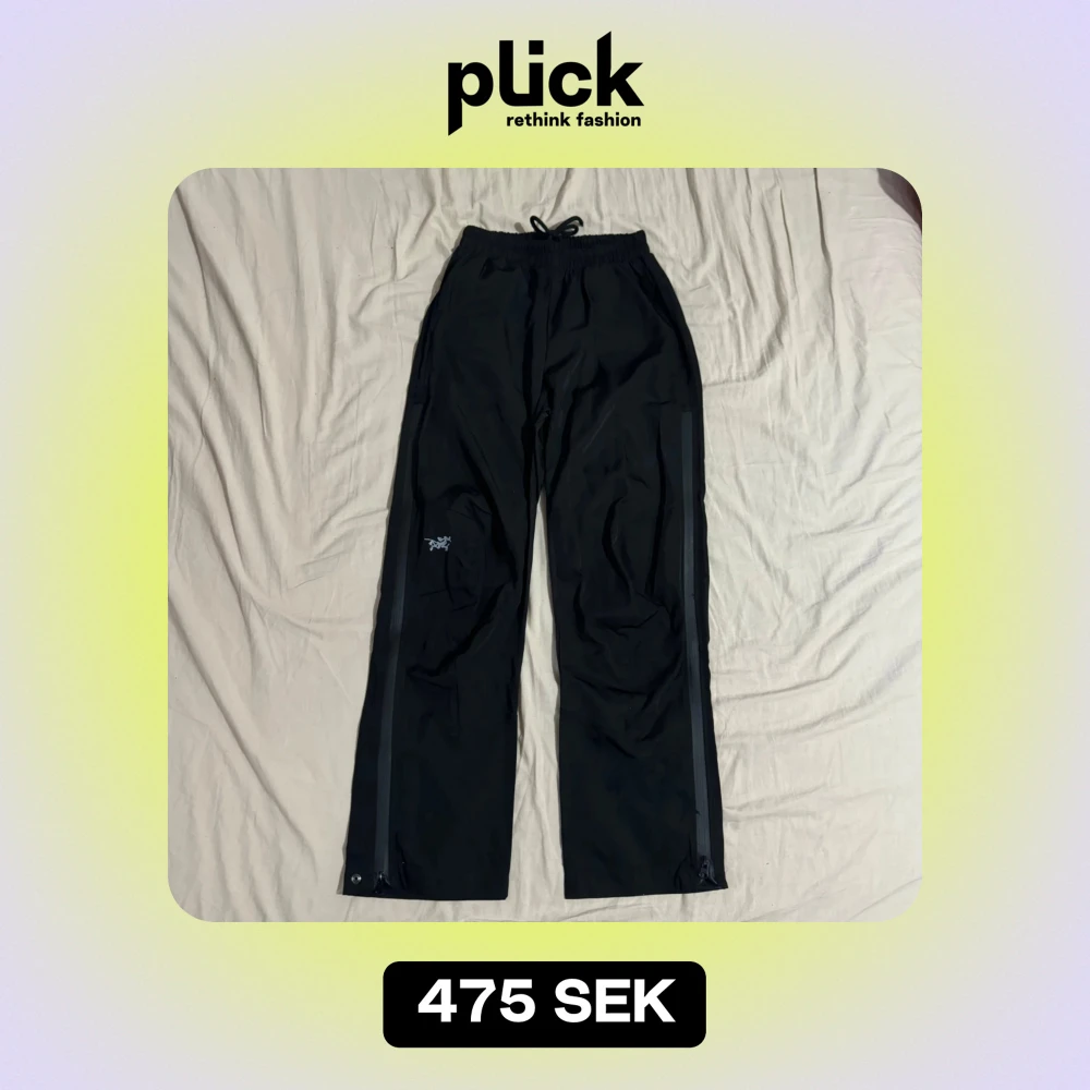 Säljer ett par svarta byxor i mycket bra skick. De har en broderad detalj på sidan och är högmidjade med en loose passform. Perfekta för höst och vår, och de har praktiska dragkedjor längs benen. Materialet känns slitstarkt och bekvämt.