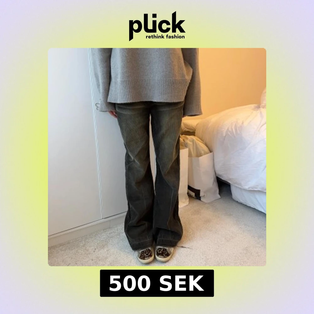 Bootcut byxor i manchester. Så så coola och unika!! 36cm över midja och 78 cm i innersöm