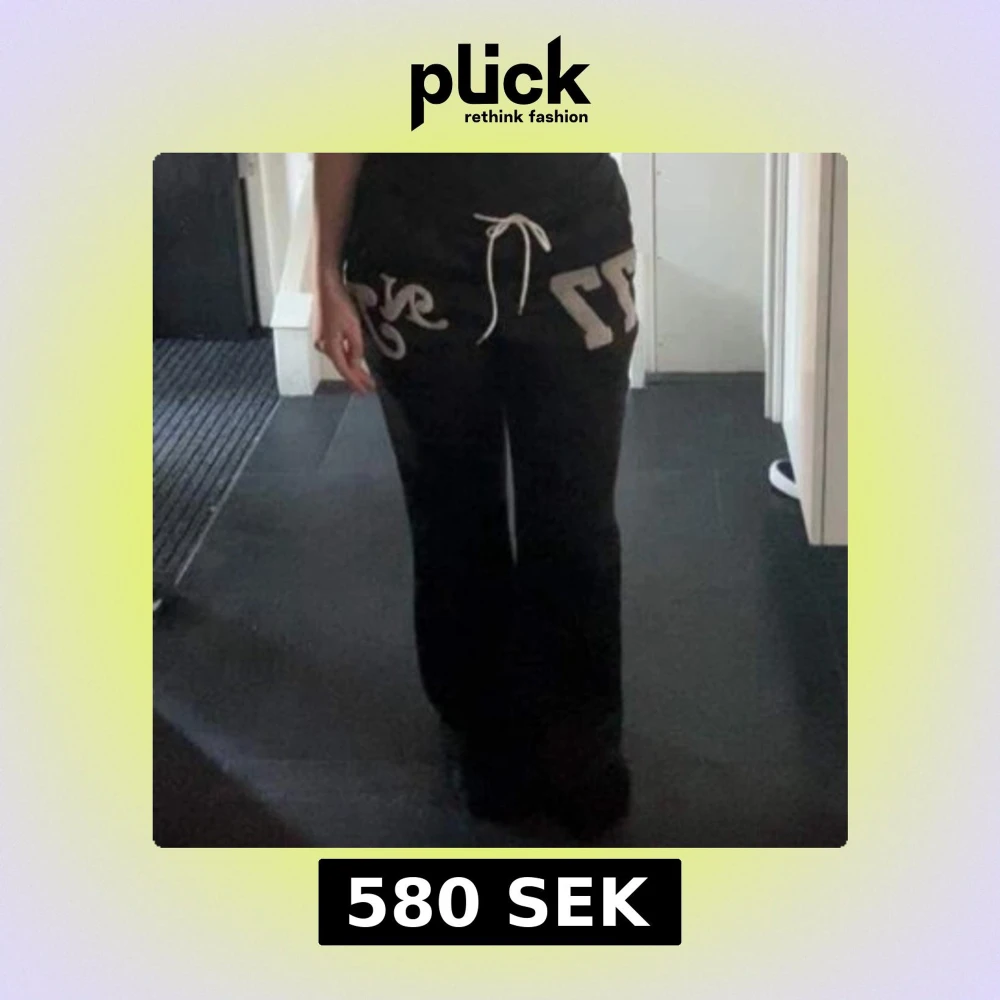 Svarta mjukisbyxor med vita tryck, siffran 77 och texten NY framtill. Byxorna har resår och vit snörning i midjan samt lätt utsvängda ben. Perfekta för en avslappnad och sportig look.