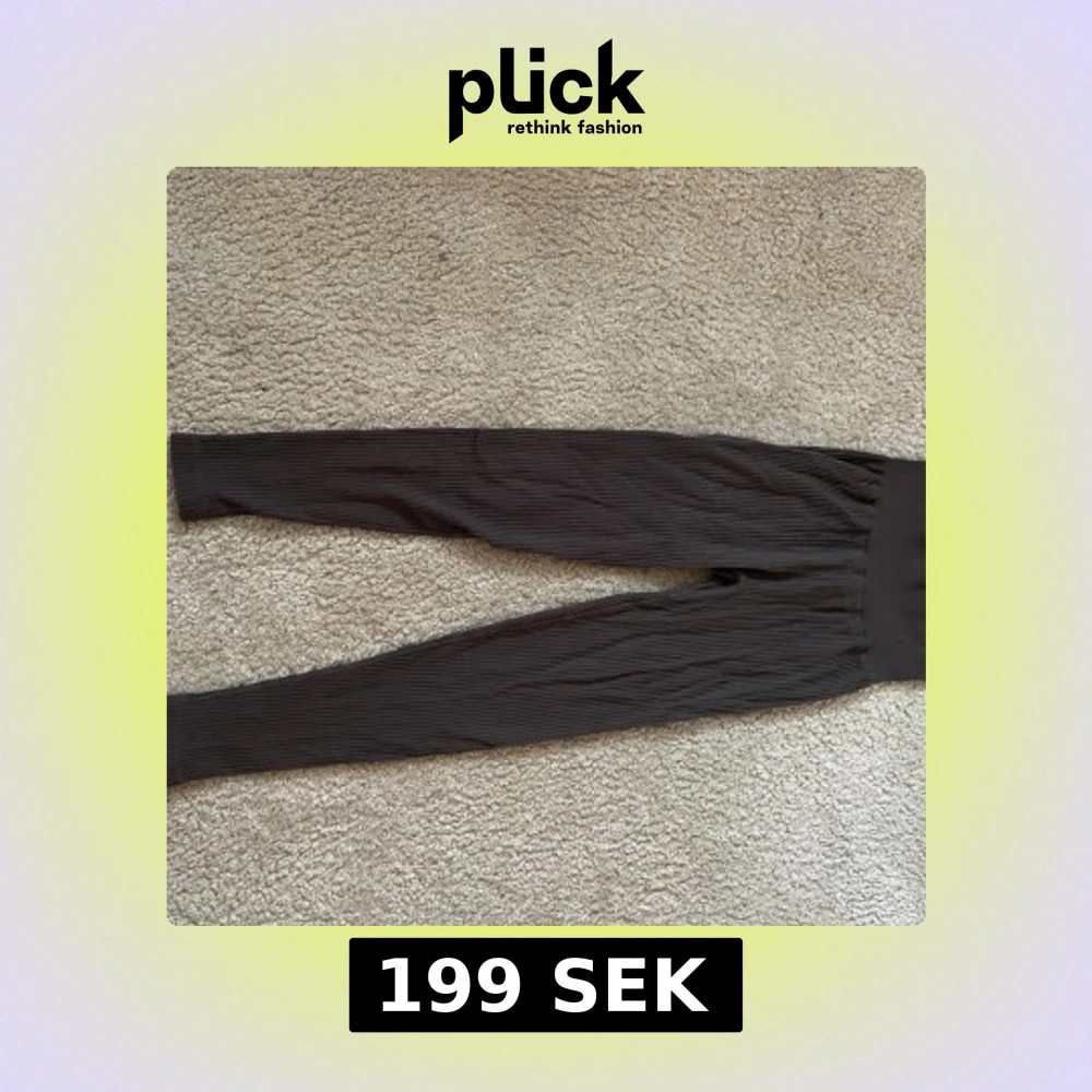 Säljer ett par gråa leggings med ribbad struktur. De har en tight passform och är perfekta för en avslappnad stil eller till träning. Materialet är stretchigt och bekvämt.