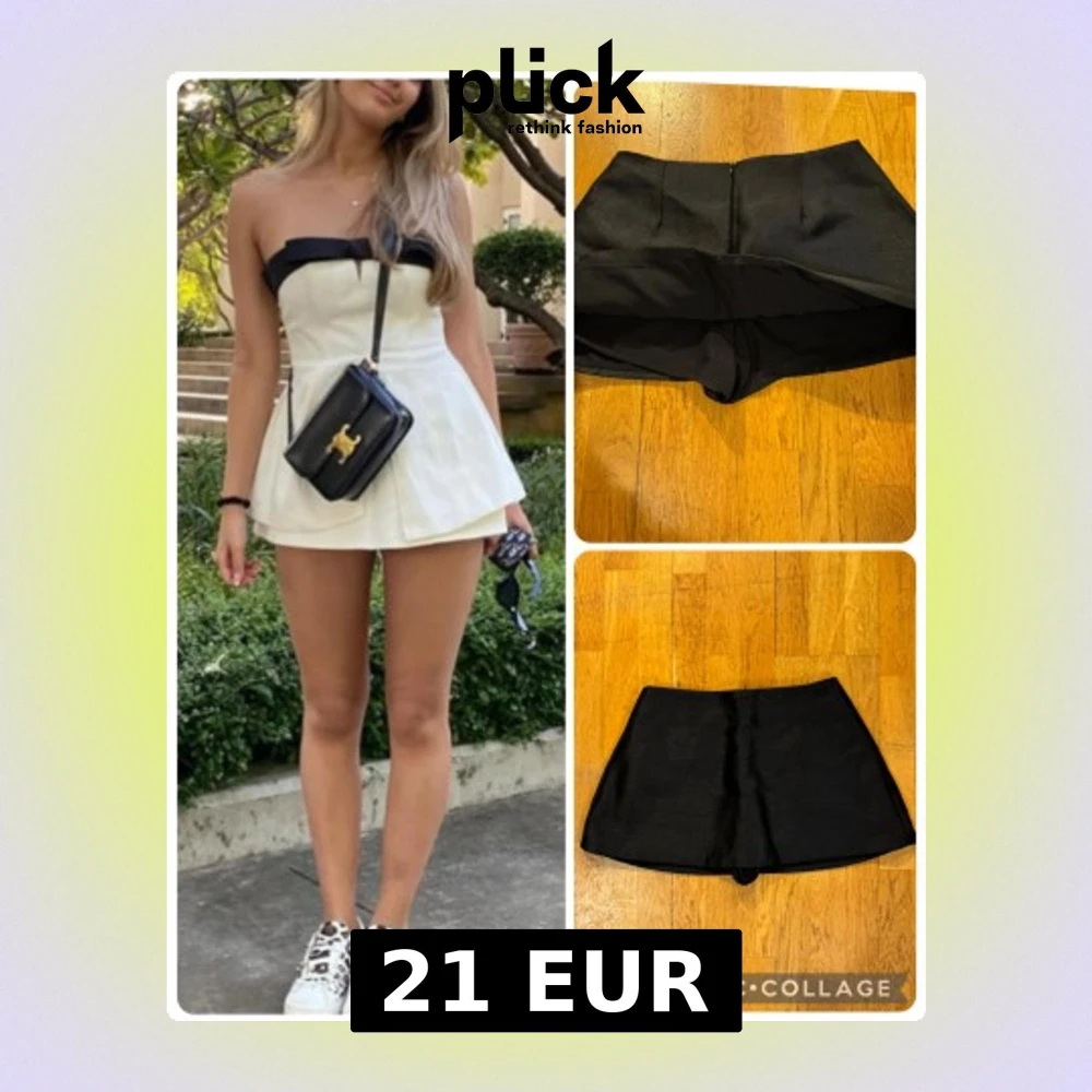 Snygga svarta skorts med en stilren, A-linjeformad siluett och dold dragkedja bak. Skortsen har en kjolliknande framsida men är shorts under, vilket gör dem både bekväma och trendiga. Perfekt för dig som vill ha en chic look med extra rörelsefrihet.