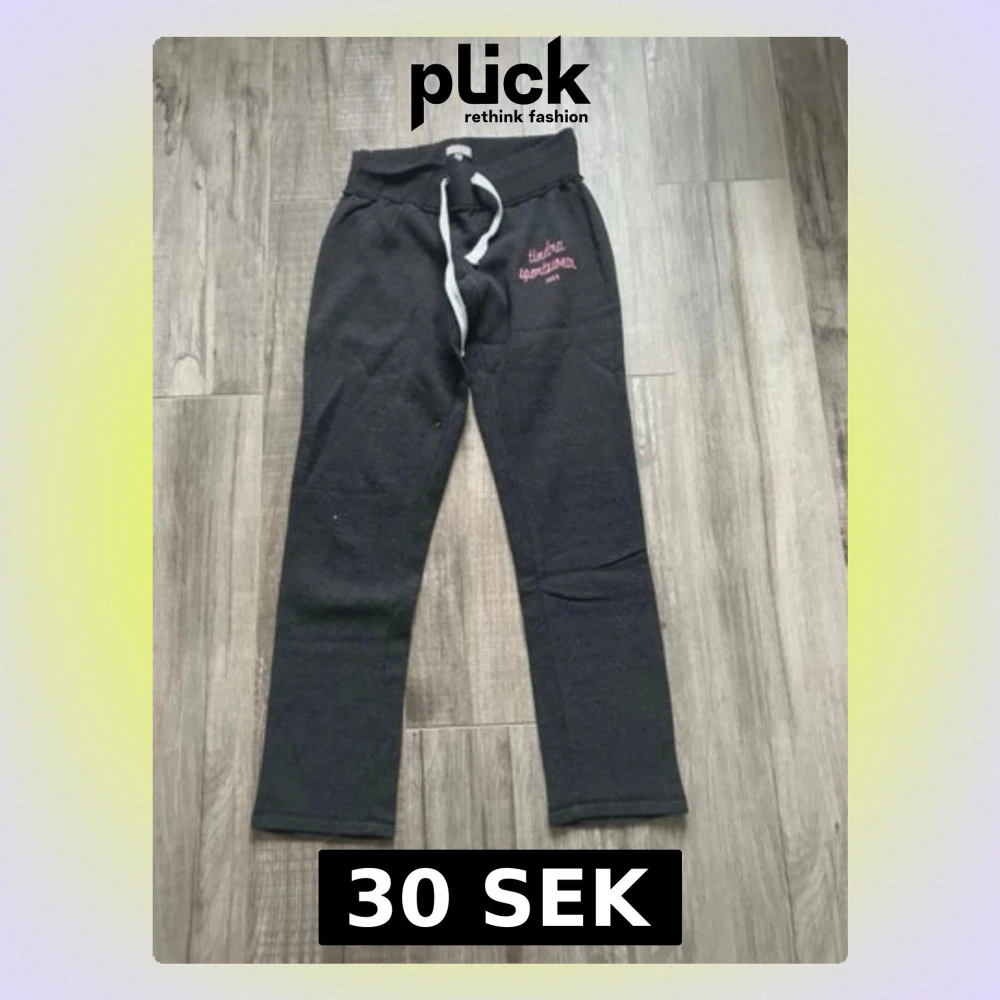 Grå mjukisbyxor från Tindra Sportswear med broderad rosa logga på vänster sida och vit snörning i midjan. Byxorna har normal passform och är tillverkade i mjukt bomullsmaterial. Perfekta för chill eller träning. Innerbenslängd 81 cm. Finns lite ytludd.