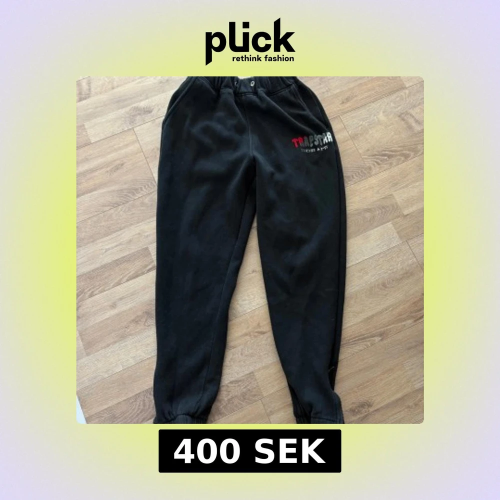 Svarta mjukisbyxor från Trapstar med broderad logga i rött, grått och vitt på ena benet. Byxorna har resår i midjan med snörning och muddar vid bensluten. Perfekta för en chill och avslappnad stil.