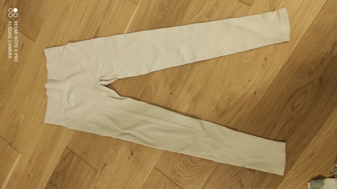 Ett par beiga träningsbyxor i bra skick jag är 1,61 och dom är typ perfekta för min längd men de kommer in till användning. Använd typ 4/5 gånger men de är inga fläckar eller något smuts på dom. Stryker och tvättar innan jag skickar de!