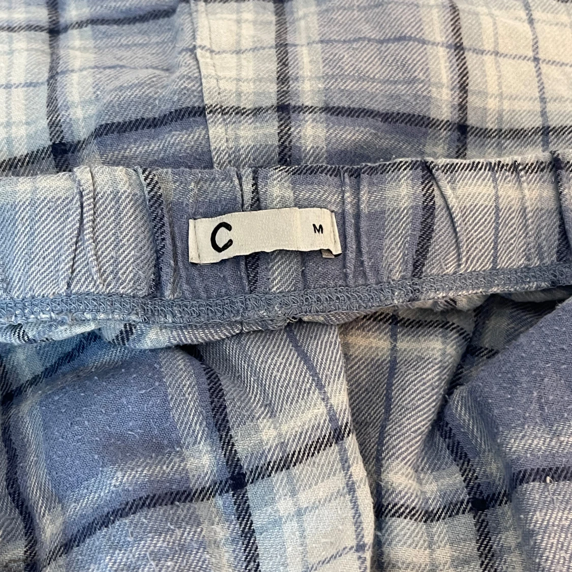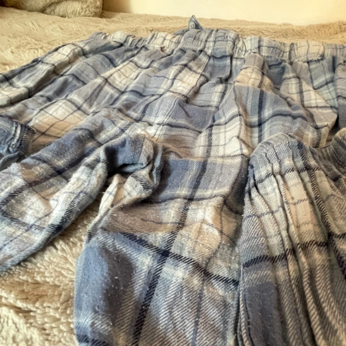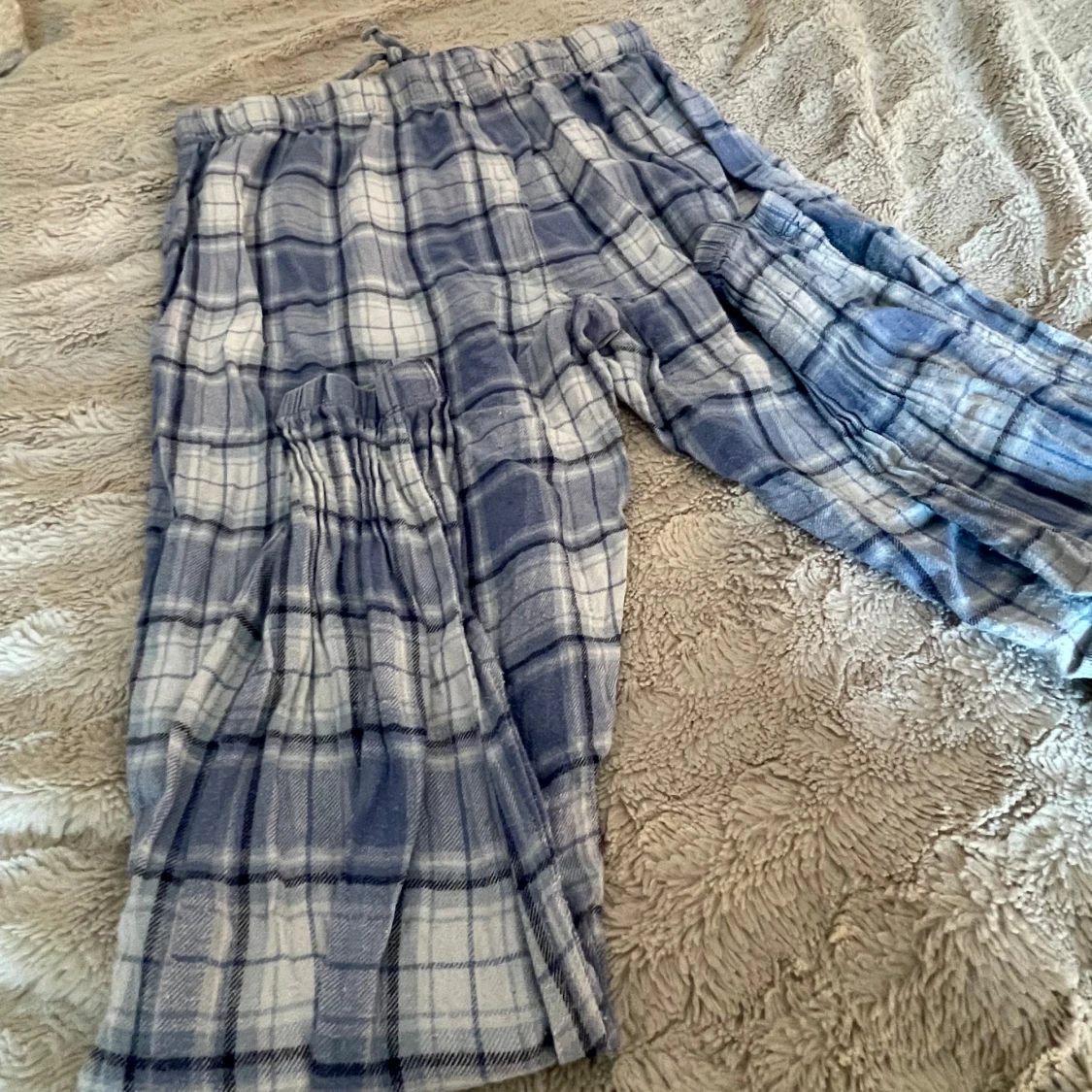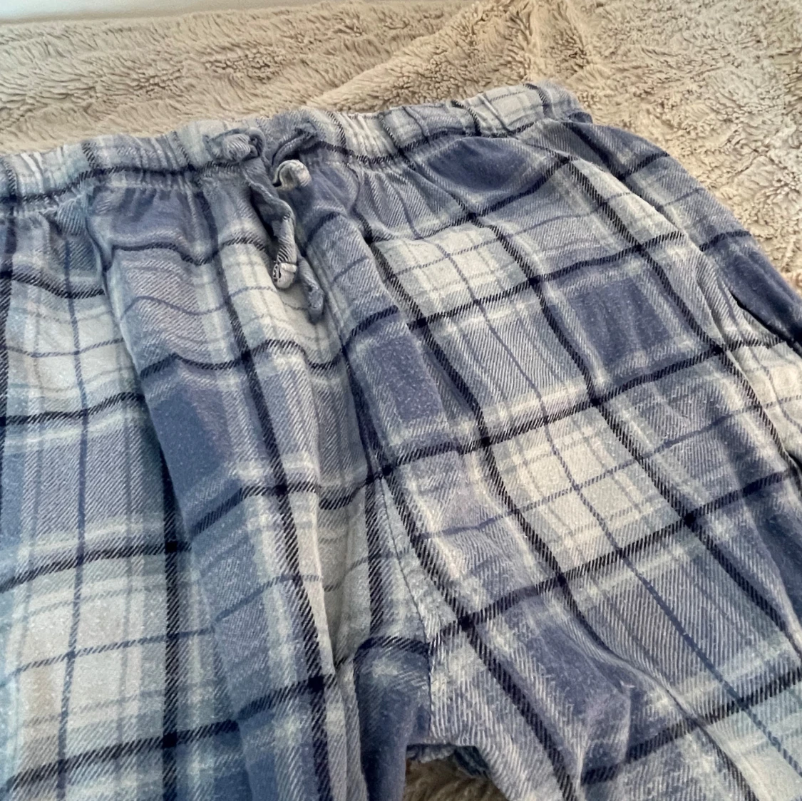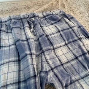 mjukisbyxor i blått och vitt rutmönster. Byxorna har resår i midjan med snörning och är tillverkade i ett mjukt material som passar perfekt för mys dagar hemma. Bör strykas efter tvättning!