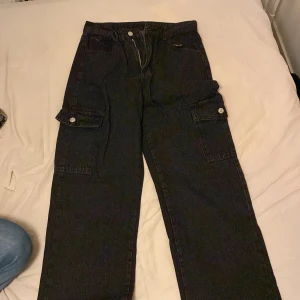 Säljer mina svarta cargo jeans som är helt oanvända.