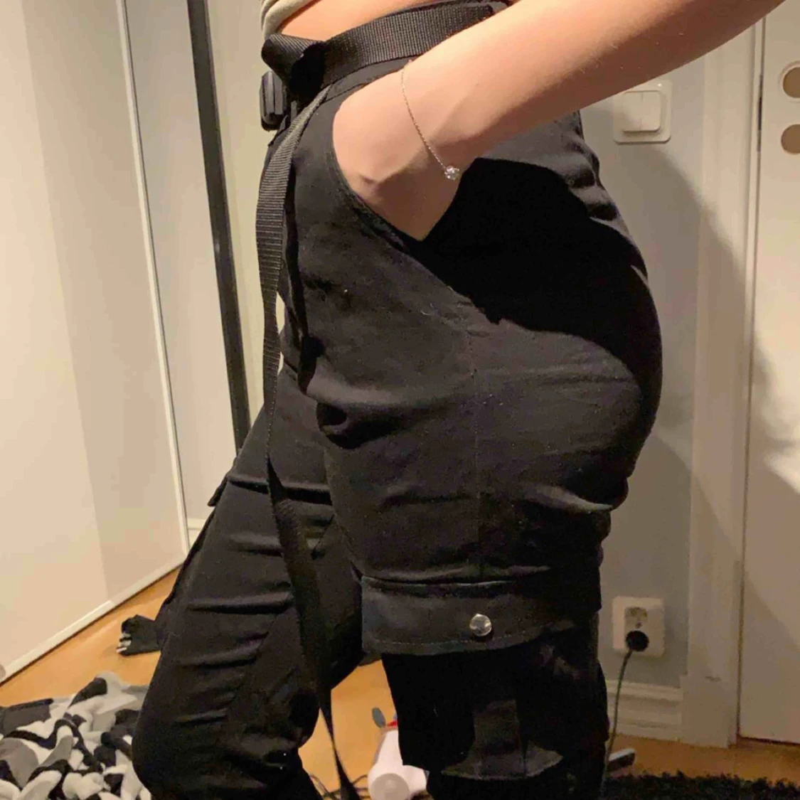 Cargo byxor ifrån madlady, bältet ingår, går att köpa båda för 300, frakt är inte inräknat i priset, använda typ två gånger,