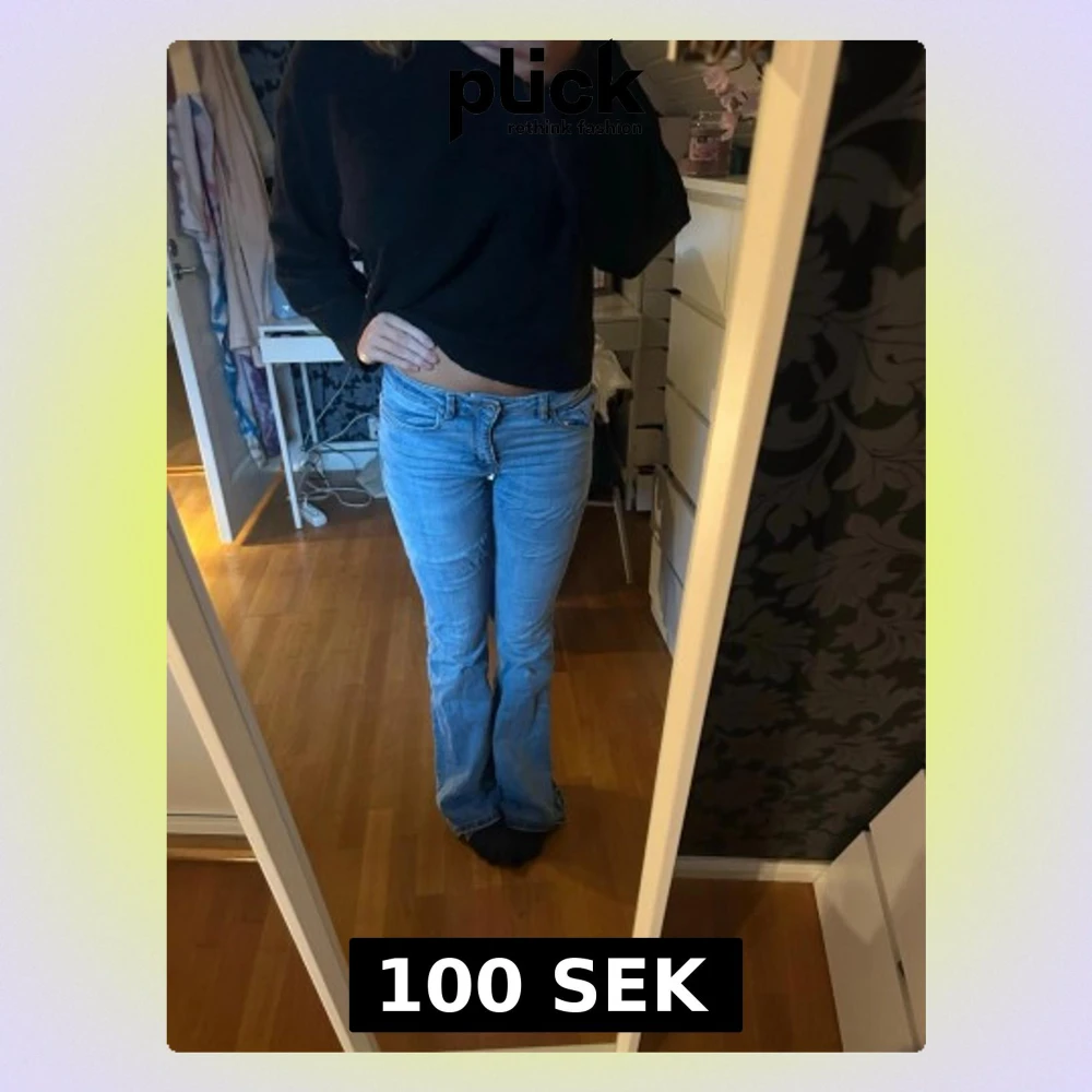 Säljer ett par snygga ljusblå bootcut jeans från mango. Modellen har klassisk femficksdesign, låg midja och raka ben som blir vidare nedtill. Jeansen är tillverkade i mjukt denim och har en cool tvättad look. Perfekta för dig som gillar retrostil och vill ha ett par jeans med lite extra attityd. Se defekter