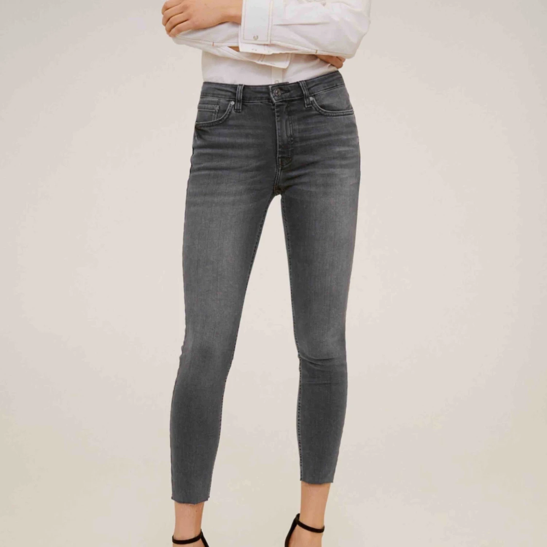 Gråa jeans med egenklippt hål på höger knä, superfräscha! Andvända ett fåtal gången men i ett bra skick!💞
