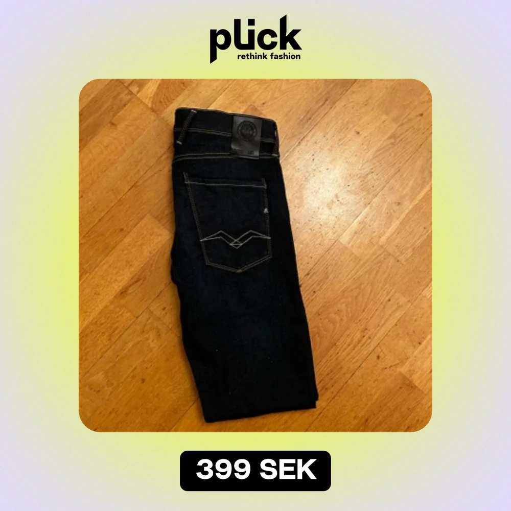 Säljer ett par snygga mörkblå jeans från Replay. De är i storlek W32 L32. Jeansen har bara blivit provade en gång, nypris 1799kr.