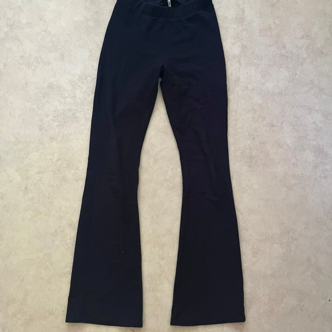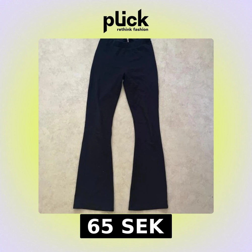 Marinblåa, glittriga, bootcut byxor från ONLY i stretchigt bomullsmaterial. Byxorna har hög midja och en klassisk utsvängd passform nertill. Perfekta för en chill dag. Det passar mig då den är väldigt stretchig och jag är 158cm. Kameran gör så de ser lite ”rött” ut på sista bilden😅