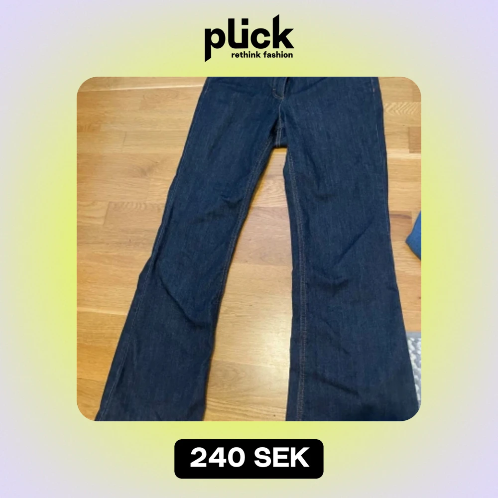 mid waist flared jeans i mörkblått. endast använd en gång. säljer pga de är för stora på mig. passar storlek S/M