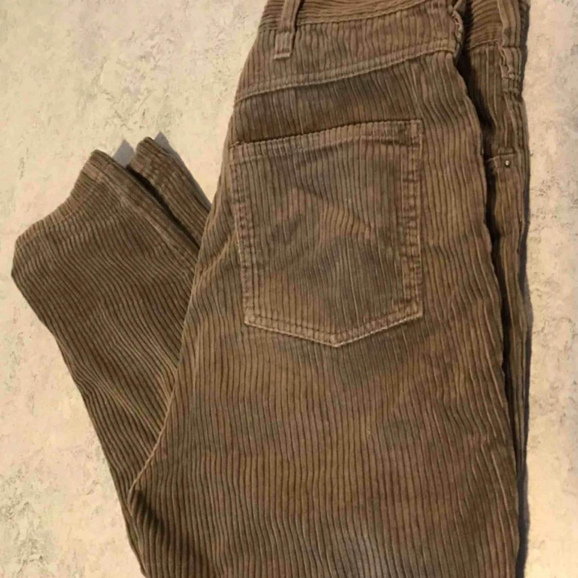 Mossgröna manchesterbyxor från Monki. Hög midja, strl S Fint skicka, använda fåtalet ggr.