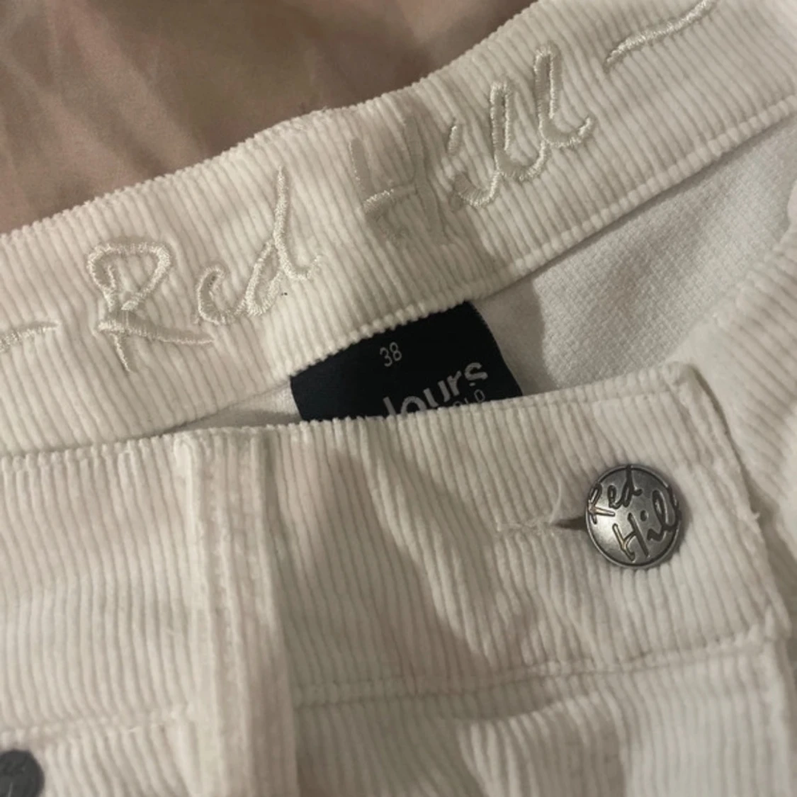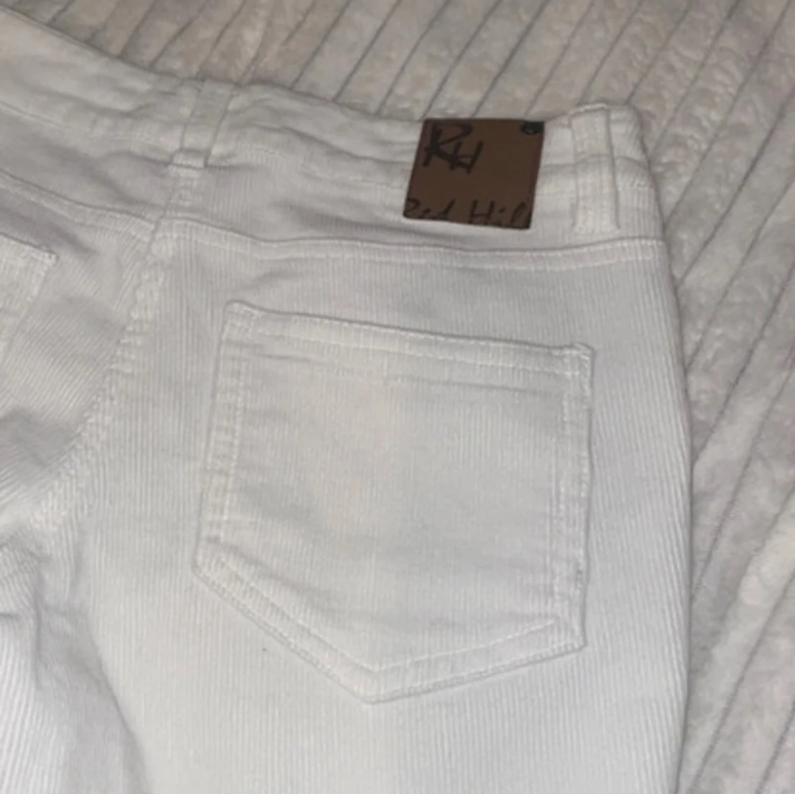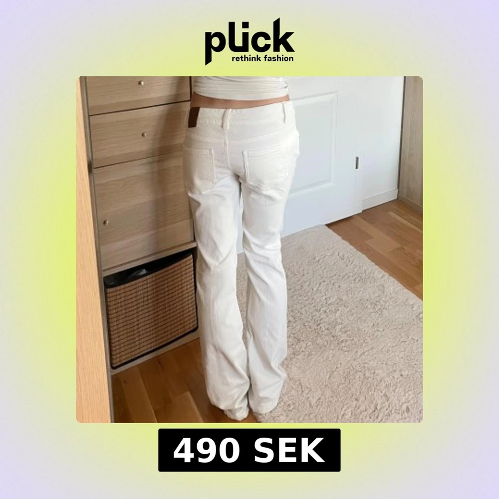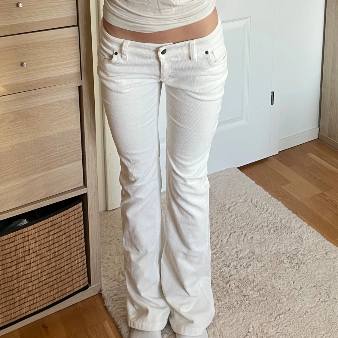 LÄgmidjade bootcut vita Manchester byxor i strl M, inga defekter 𩷠// midja 39cm tvÀrsöver, innerbenslÀngd 82cm