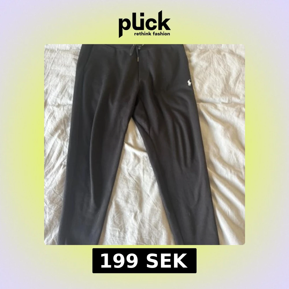 Svarta mjukisbyxor från Polo Ralph Lauren i storlek XL. Byxorna har dragsko i midjan, ribbade muddar vid bensluten och en broderad vit logga på låret. Sköna och stilrena, perfekta för chill eller träning.