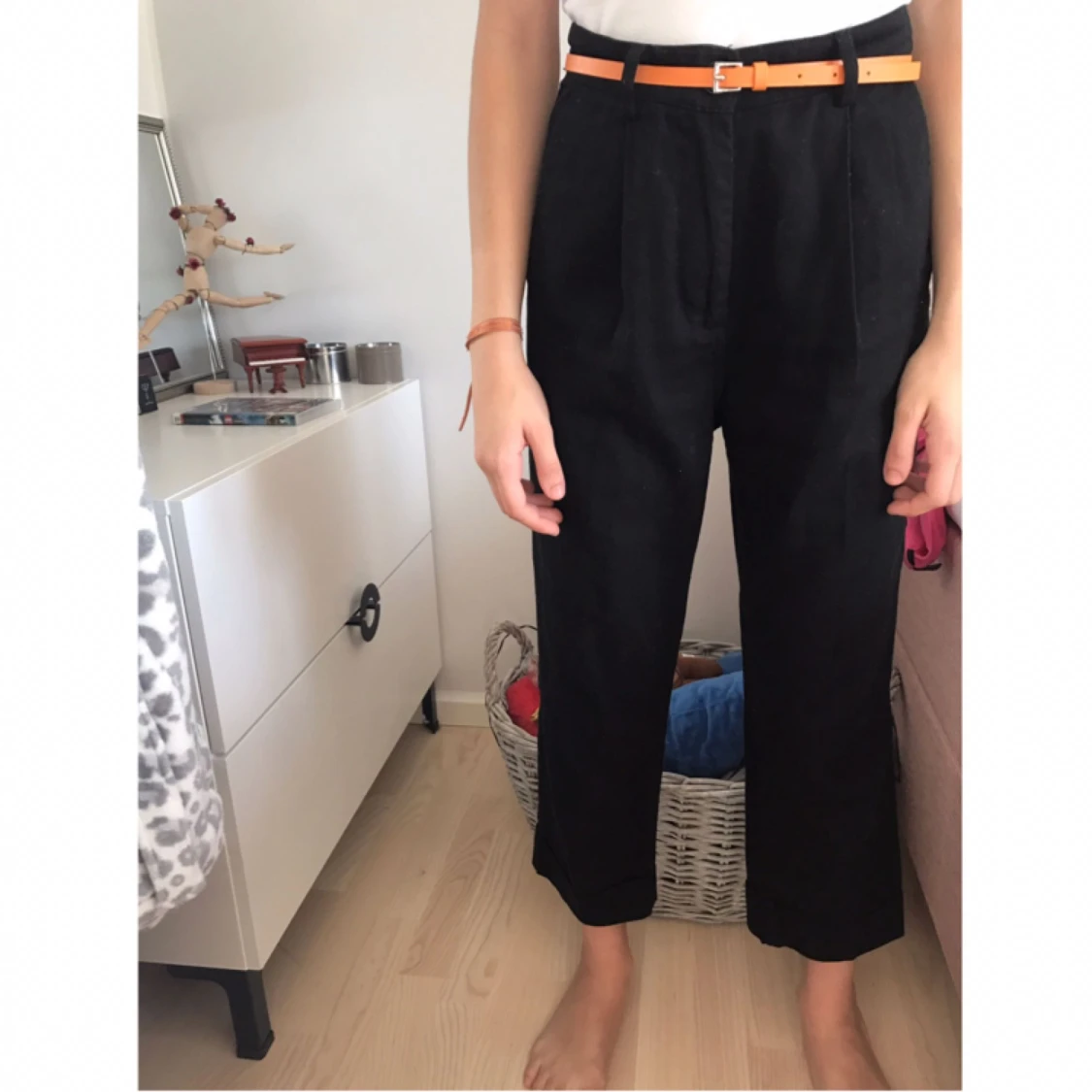 Byxor i tunt jeansliknande material från monki! Passar 34-36 beroende på hur man vill att de ska sitta Använda typ 2 gånger då de e för små för mig