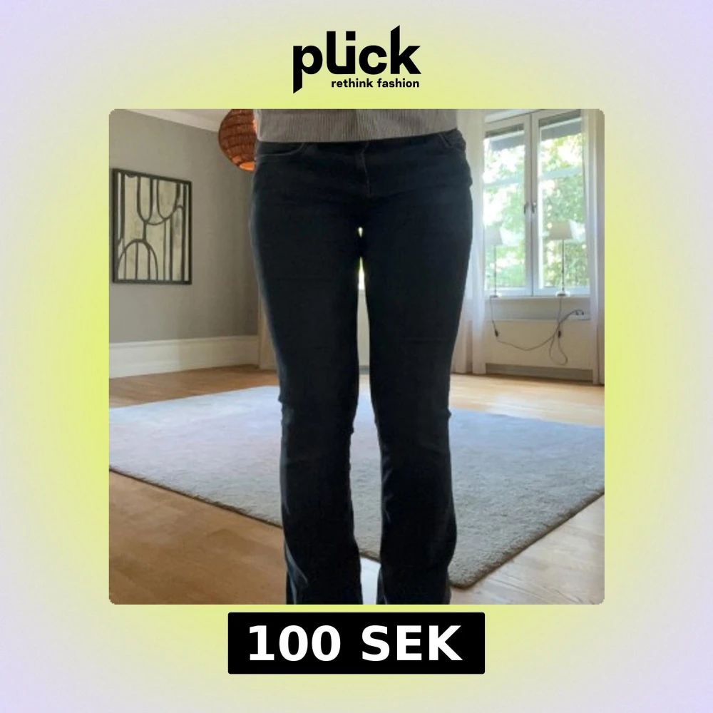 Säljer ett par mörkblå jeans med bootcut passform och låg midja. Ganska stretchigt material. Nypris 500kr säljer för 100kr.