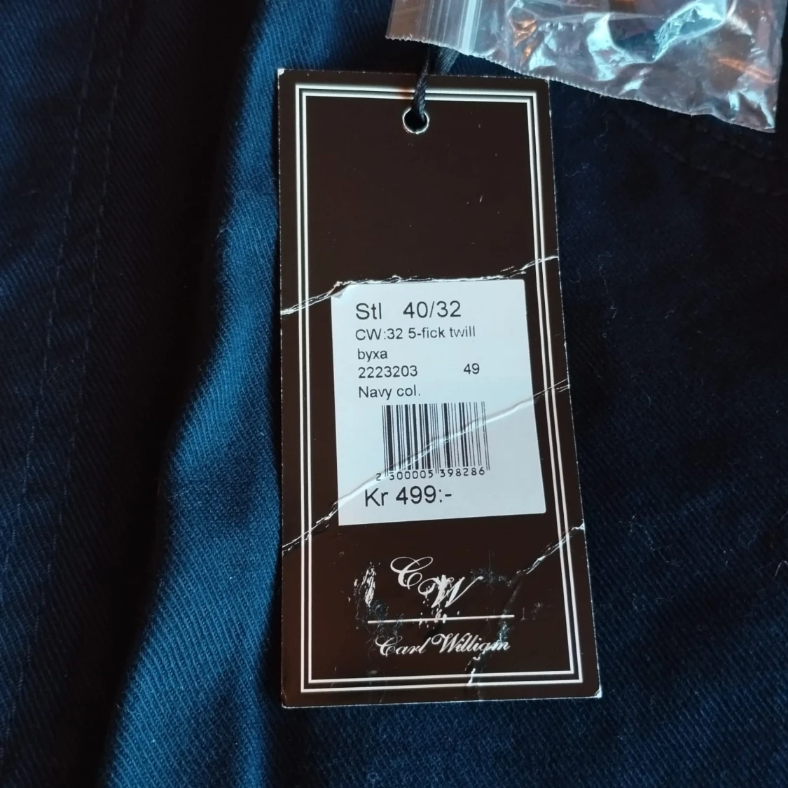 Snygga mörkblå byxor från Carol Wiliam “casels” I twillmaterial. De har en klassisk femficksdesign och stängs med dragkedja. Perfekta för en stilren look.