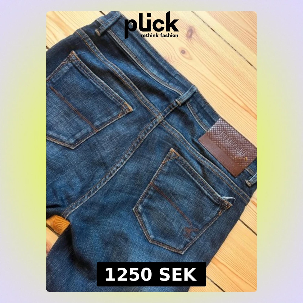 Snygga mörkblå jeans från Re-Hash med klassisk femficksdesign och brunt läderpatch bak. Jeansen har raka ben och kontrastsömmar, tillverkade i slitstarkt denim. Passar dig som gillar stilrena och tidlösa jeans med en modern touch. 3000kr nya