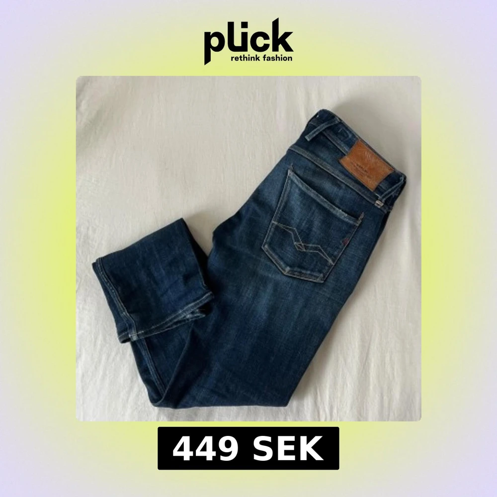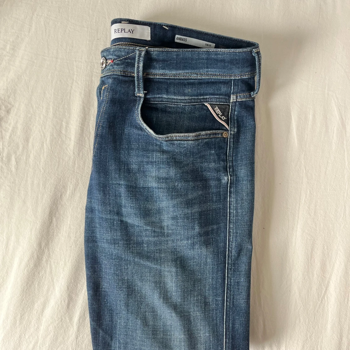 Snygga mörkblå jeans från Replay, modell Anbass. De har en klassisk femficksdesign och en bekväm passform. Perfekta för en stilren look😊 Pris ej hugget i sten