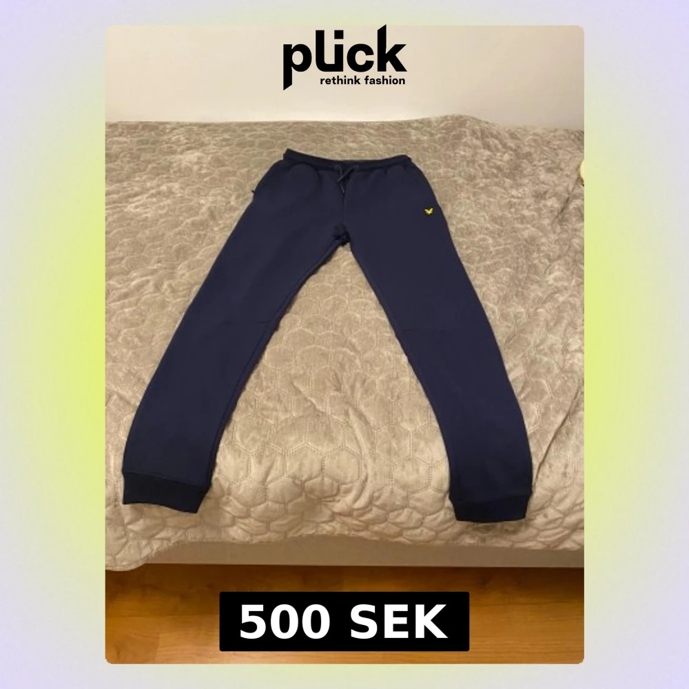 Mörkblå mjukisbyxor från Lyle & Scott med gul logga på vänster sida. Byxorna har dragsko i midjan, ribbade muddar vid bensluten och praktiska fickor med dragkedja. Perfekta för chill eller träning, tillverkade i mjukt bomullsmaterial.