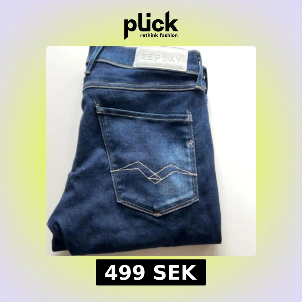 Säljer ett par mörkblå Replay Anbass jeans med klassisk femficksdesign och snygga kontrastsömmar. Jeansen har normal passform och är tillverkade i ett stretchigt denimtyg. Perfekta för dig som gillar stilrena och bekväma jeans.