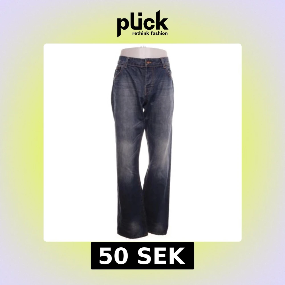 Säljer ett par mörkblå jeans från H&M med relaxed passform och låg midja. Jeansen har raka ben och klassisk femficksdesign. Tillverkade i 100% bomull för en skön känsla och slitstark look. Köpte på Sellpy för 85 kr men säljer då jag missade att de va low waist. Aldrig använda, endast provade.
