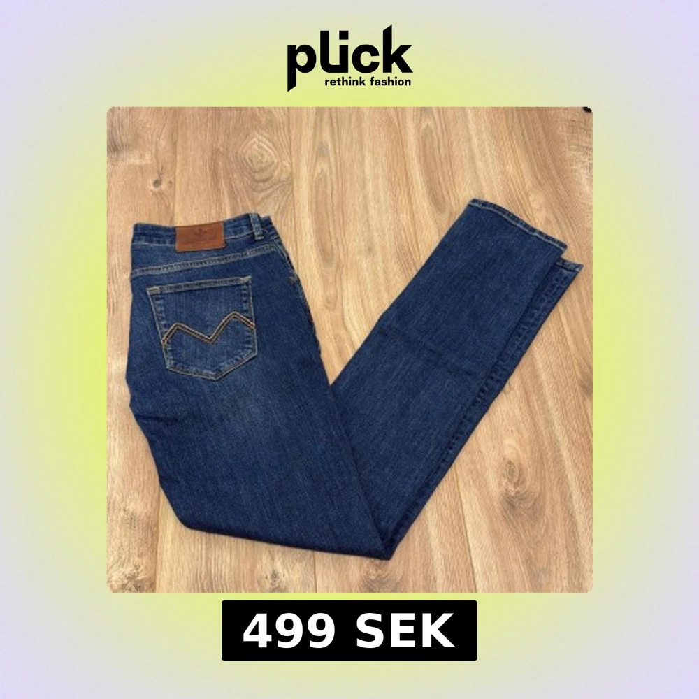 Snygga blå jeans från Morris med klassisk femficksdesign och guldfärgad broderad lilja på myntfickan. Jeansen har kontrastsömmar, läderpatch bak och raka ben. Perfekta för dig som gillar stilrena och tidlösa jeans med en twist.