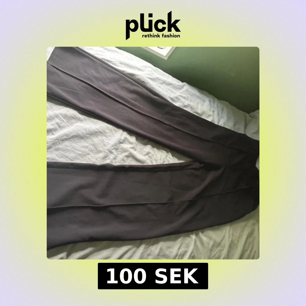 Snygga svarta kostymbyxor från H&M i storlek S. Byxorna har en hög midja och ett breda ben. Passar dig som gillar minimalistisk stil.