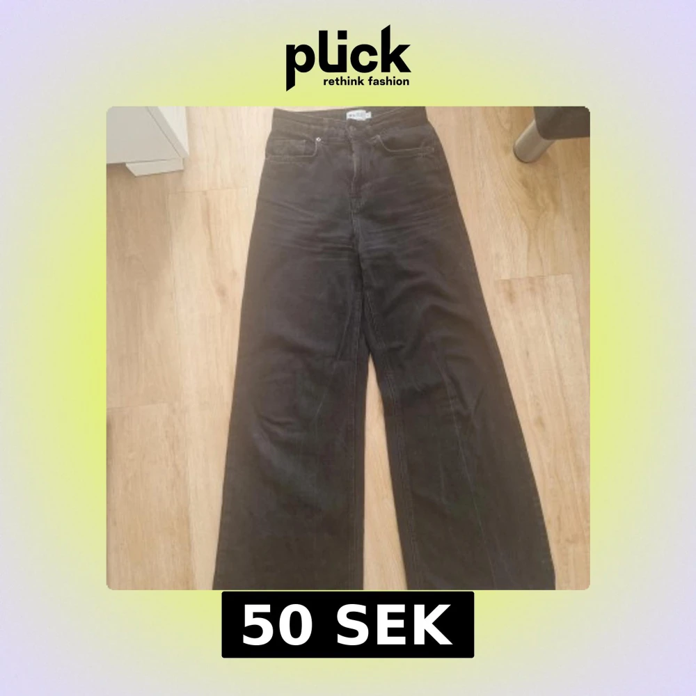 Säljer ett par svarta jeans från NA-KD med hög midja och breda ben. Klassisk femficksmodell med dragkedja och knapp framtill. Jeansen är tillverkade i bomull och har en stilren, enkel look som passar till det mesta.