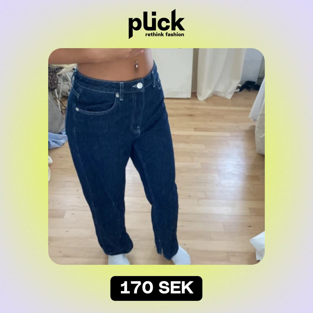 Ett par jeans från NA-KD som inte kommer till användning längre. Jag är 168 lång. Den har en liten slits längst nere. Hör av er gärna för fler tillfälliga frågor🩷