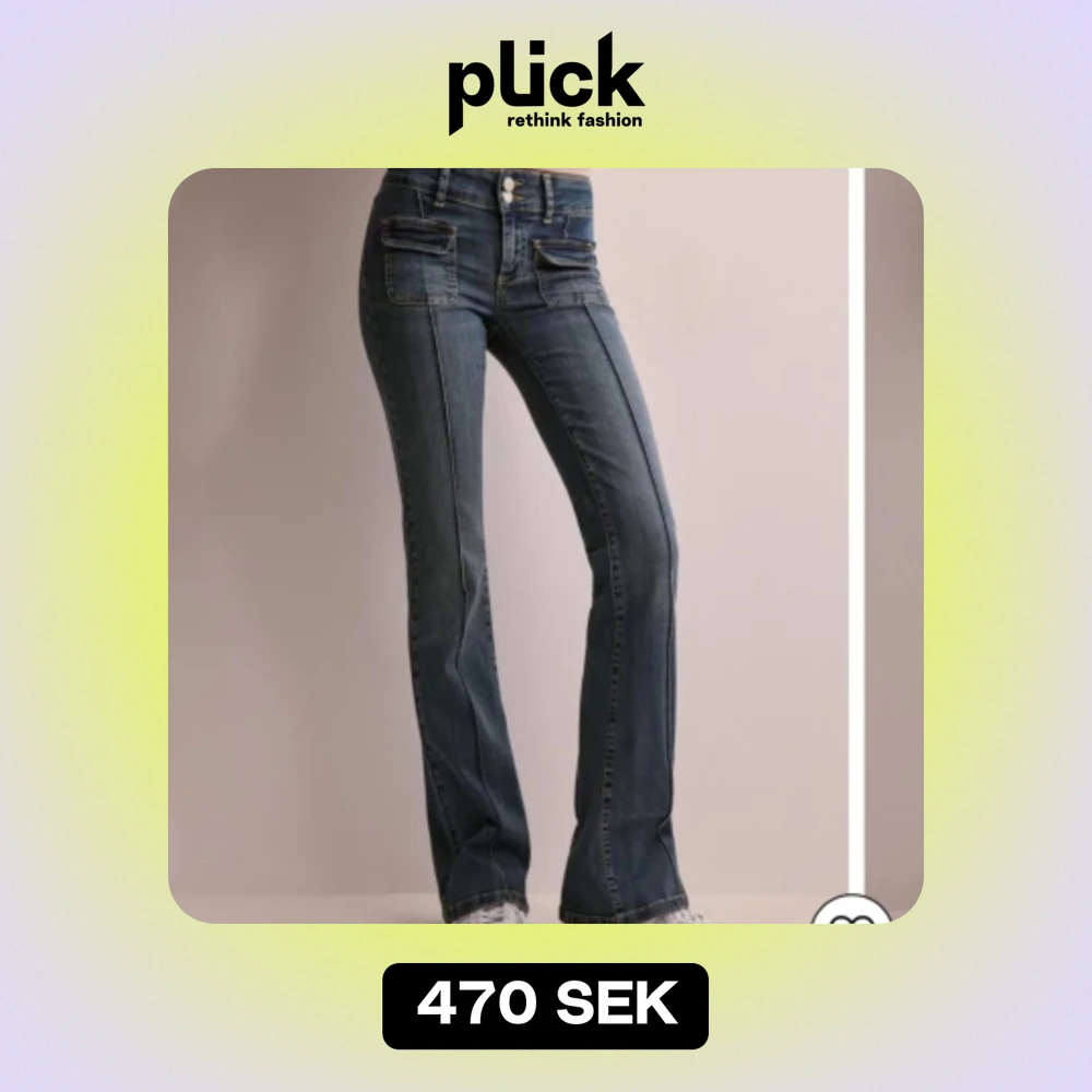 Nelly jeans - Säljer dessa supersnygga lågmidjade jeans med detalj på fickorna från Nelly! Storlek 32 och bra skick🥰💗