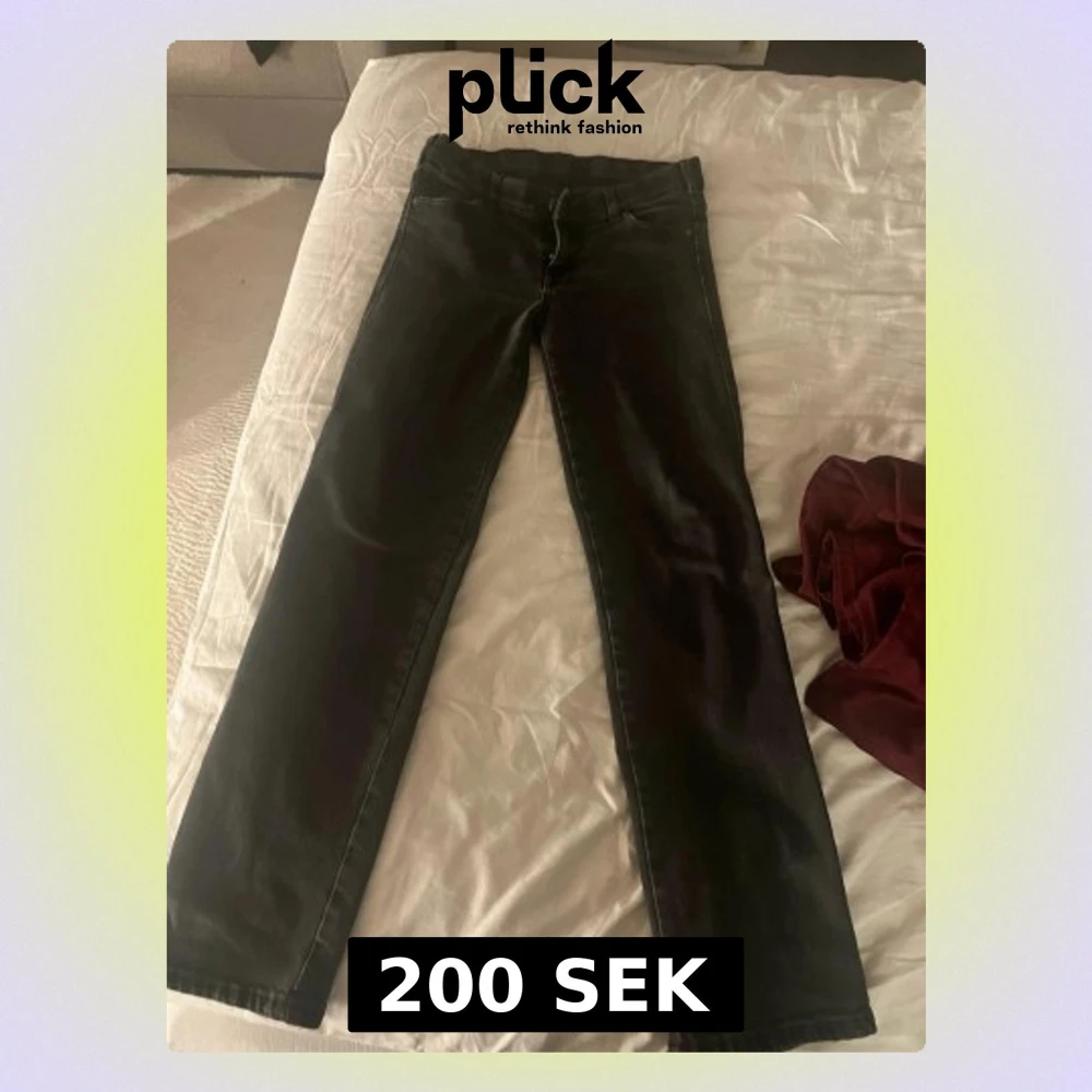 säljer mina jeans ifrån nelly som är lågmidjade. det sitter prefekt vid hälen och jag är 1,60.
