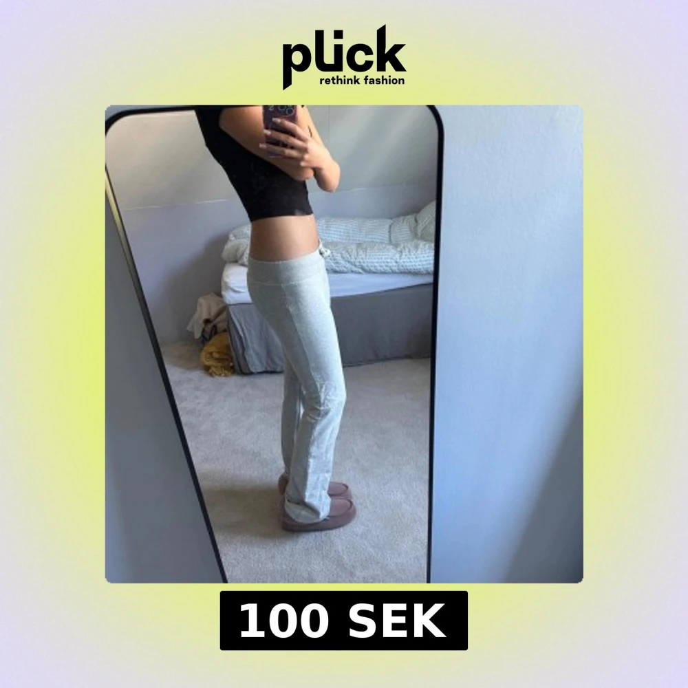 Superbekväma ljusgrå mjukisbyxor med bred resår i midjan och snörning framtill. Byxorna är i en bootcut modell och är gjorda i mjukt bomullsmaterial, perfekta för chill dagar hemma eller när du vill vara extra comfy. De har väldigt låg midja och jag säljer de pågrund av att dom har blivit lite för korta för mig. Hade varit perfekta om det vore en bra längd för mig.