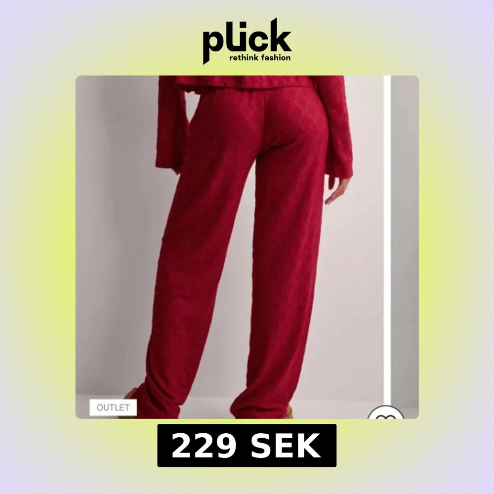 Snygga röda byxor med avslappnad passform och vida ben. Byxorna har diskret mönster i tyget och dragsko i midjan för extra komfort. Perfekta för en chill och trendig look.