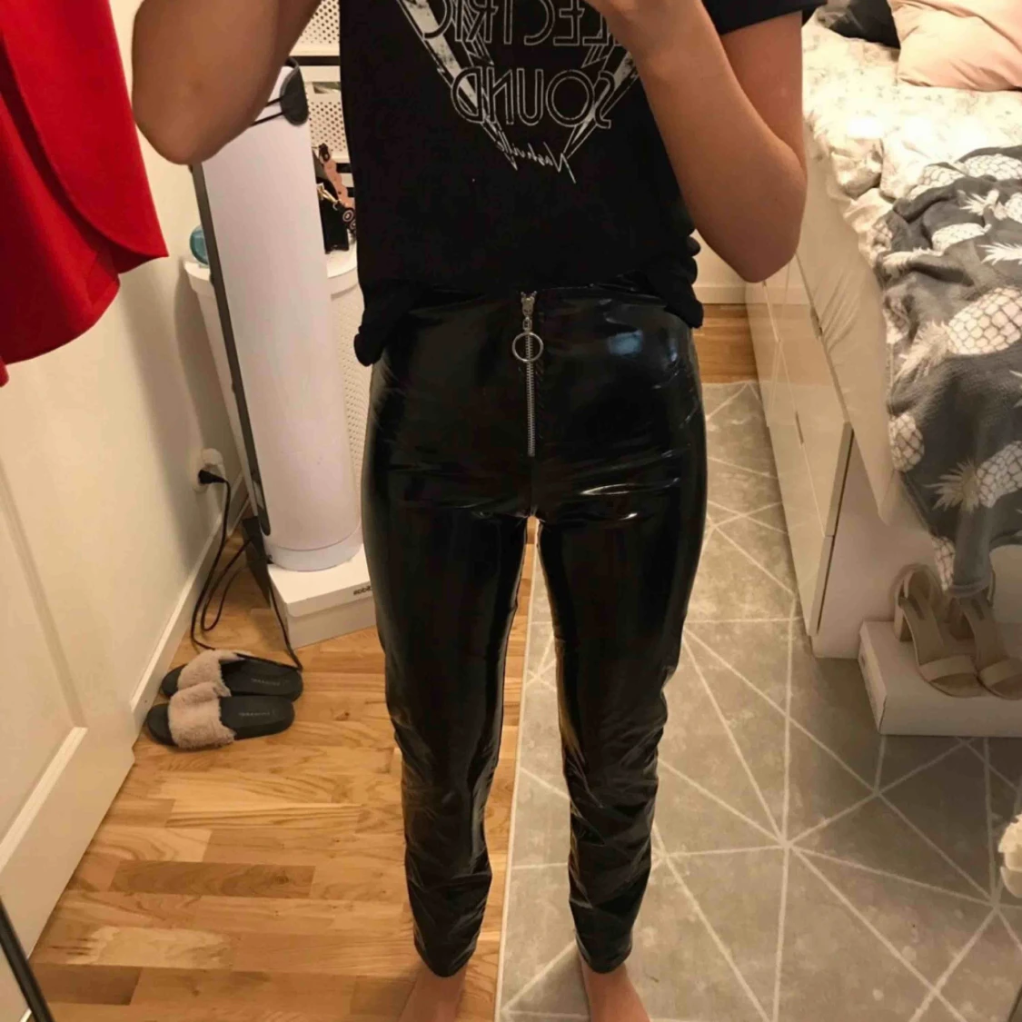 Ett par skitsnygga lackbyxor från Nelly i storlek S men passar även XS.💕säljer pga av att jag inte använder de är själv 166 cm och dom är bra i längden