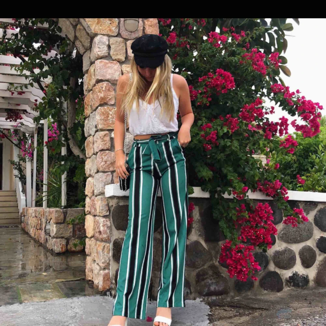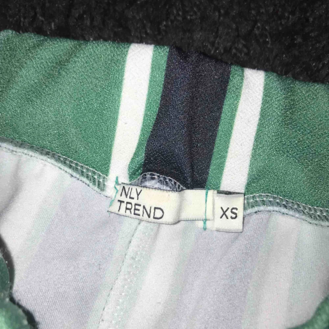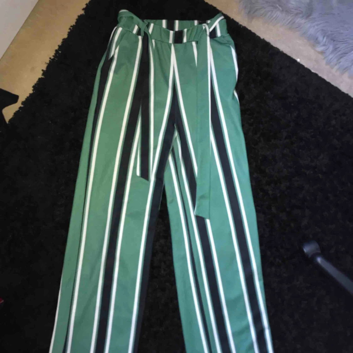 Snygga byxor från Nelly.com i skönt material! Endast använda en gång. Säljer då de inte kommer till användning. Strl XS-S, nypris 599kr😊