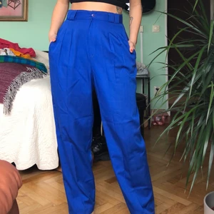 Mina skönaste byxor som är en helt orolig Klein-blå färg! Köpta på en vintage i new tork för 700kr. satt pris eller högst bjudande gäller! Köparen står för frakt💞