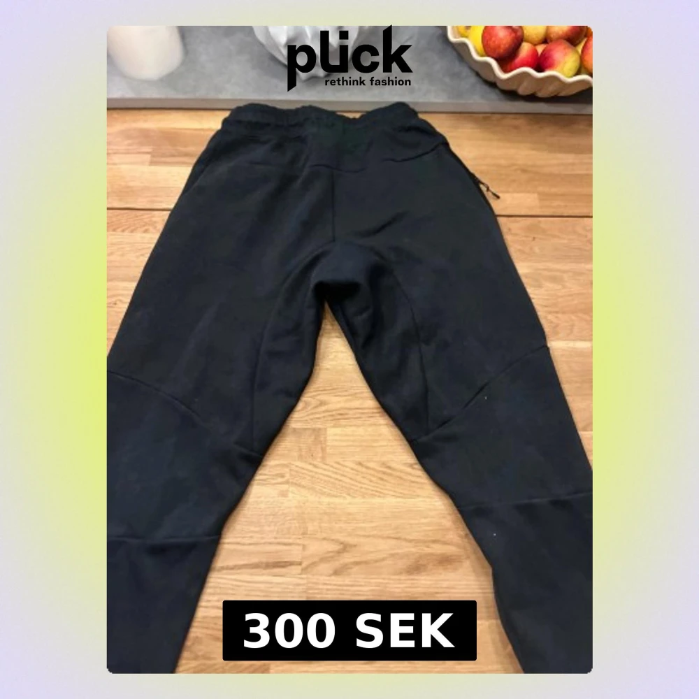 Svarta mjukisbyxor från Nike med elastisk midja och snörning. Byxorna har en tapered passform och är tillverkade i mjukt bomullsmaterial. Nike-logga på vänster lår och diskreta detaljer längs benen. Perfekta för chill eller träning. Storlek medium men passar S är man längre än 170 kommer dom inte passa