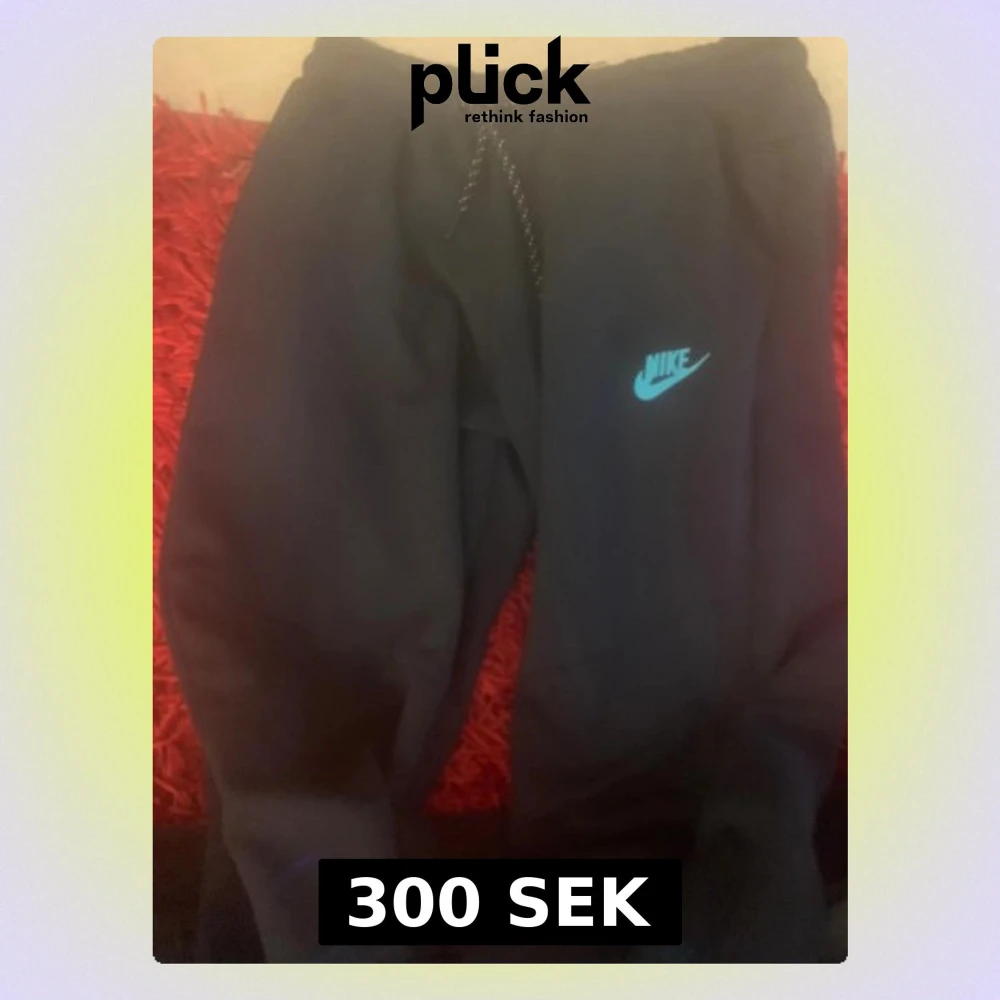 Svarta mjukisbyxor från Nike i storlek S med turkos Nike-logga på benet. Byxorna har snörning i midjan och dragkedja på fickan. Perfekta för chill eller träning, mjukt material och relaxed fit. Säljer nu eftersom jag inte använder mjukisbyxor. Byxorna är helt nya och aldrig använts