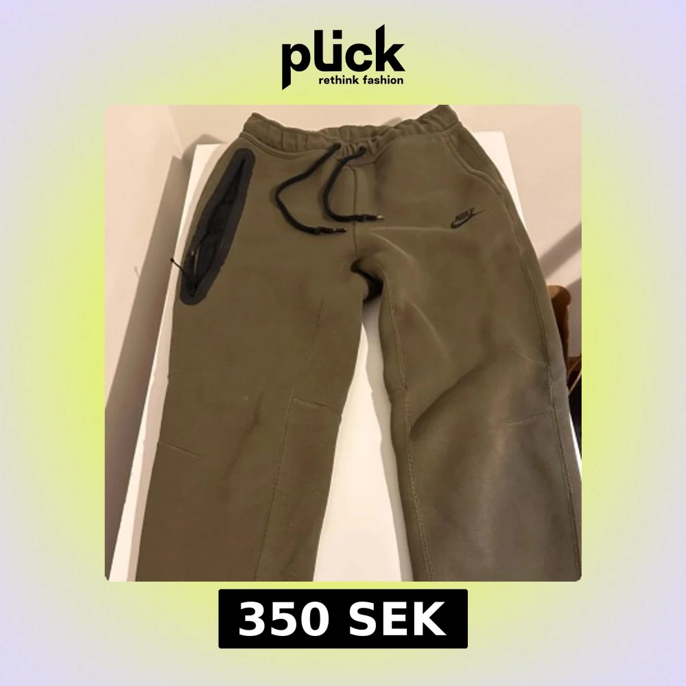 Snygga olivgröna mjukisbyxor från Nike med svart logga på benet. Byxorna har en bred resår i midjan med svarta snören och en stor ficka med dragkedja på sidan. Perfekta för chill eller träning, tillverkade i mjukt bomullsmaterial.