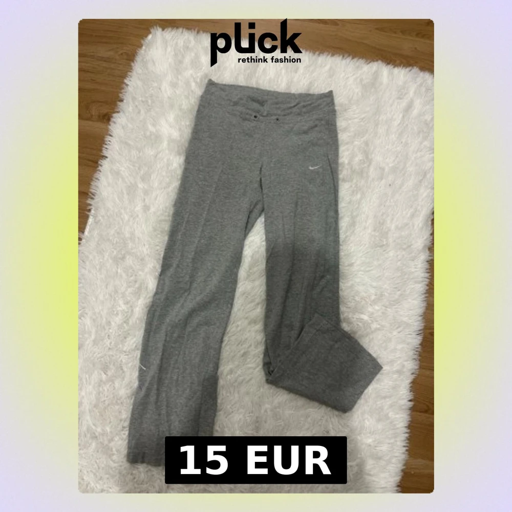 Grå mjukisbyxor från Nike med liten vit logga på benet. Byxorna har rak passform, bred resår i midjan och är tillverkade i mjukt bomullsmaterial. Perfekta för chill dagar eller träning.