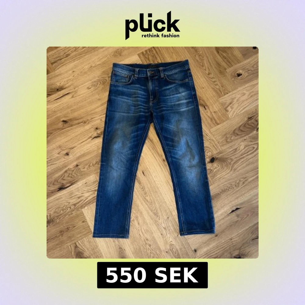 Snygga blå jeans från Nudie Jeans. Jeansen har en slim/straight passform och sjukt snygg tvätt både fram och bak. Jeansen passar dig som är ca 172-180. Riktigt bra skick utan skador. W32 L30